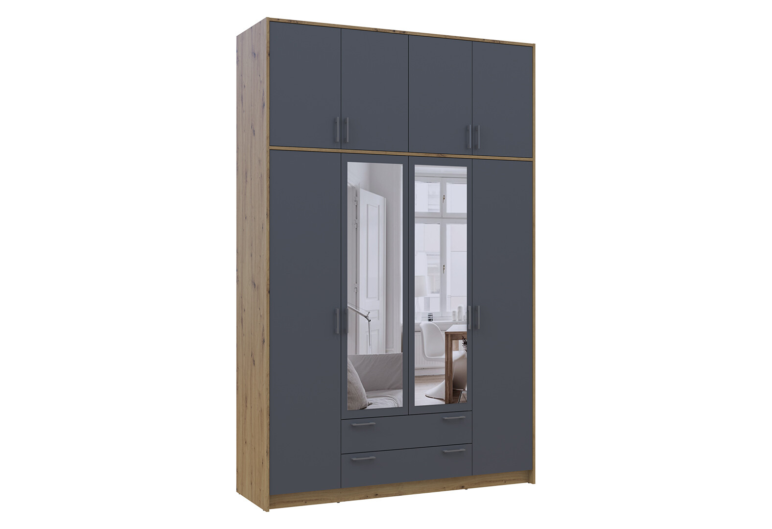 Зображення 2 - Шафа Doros Ронді 4-дверна з дзеркалом, високою антресоллю і 2 шухлядами 160 см Дуб Артізан / Графіт
