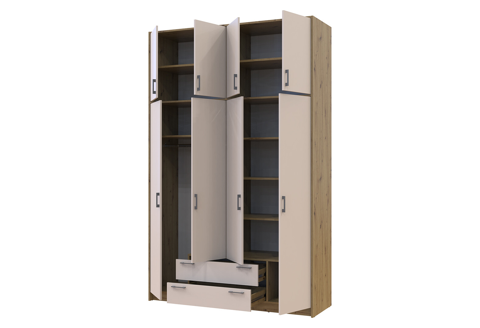 - Шафа Doros Ронді 4-дверна з високою антресоллю і 2 шухлядами 160 см Дуб Артізан / Кашемір