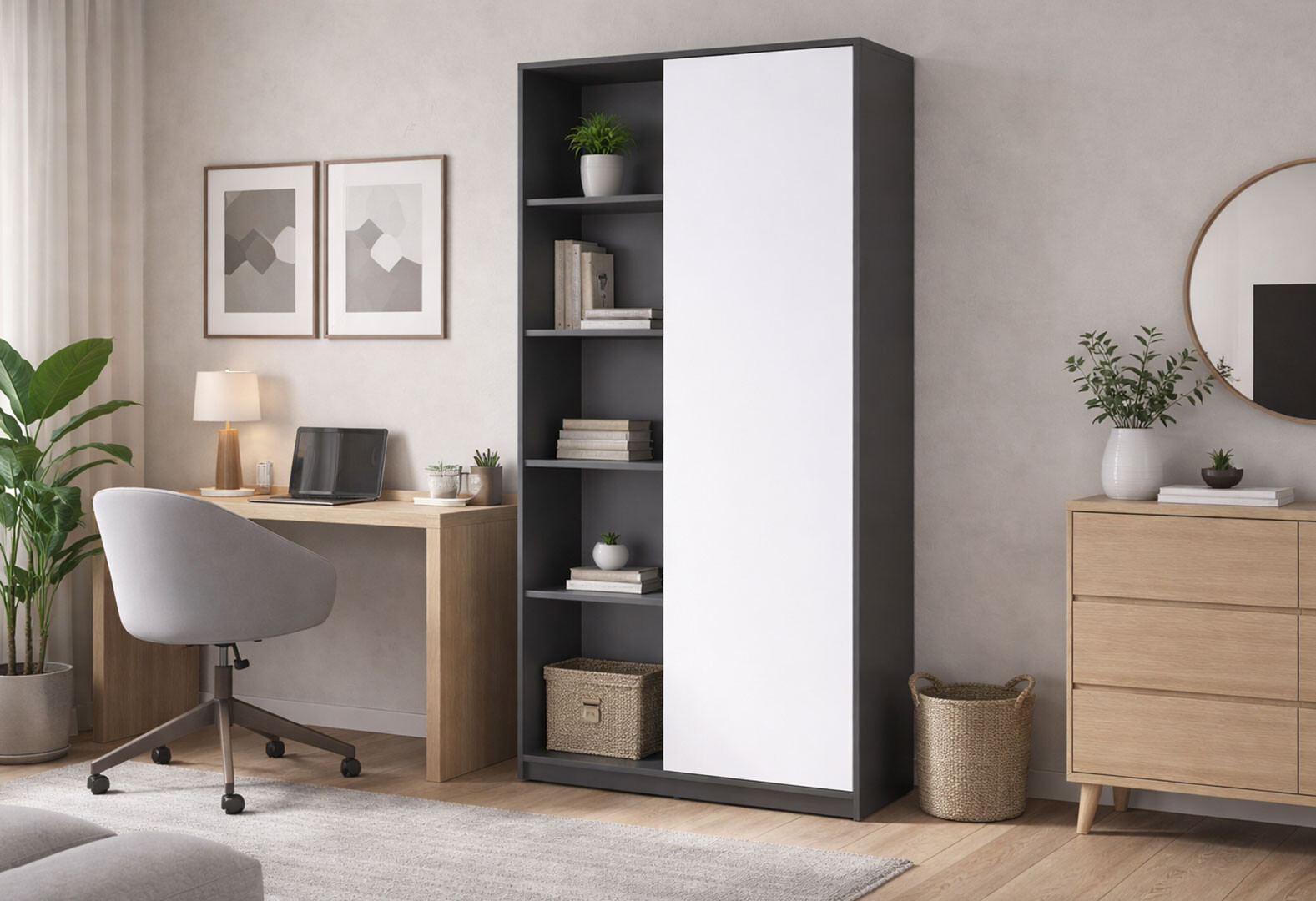 Шафа Doros Студент ДСП 1-дверна з полицями 90 см, графіт / білий
