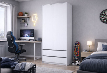 - Розмір: Ширина 90 см, висота 200 см, глибина 55 см. Ідеальні габарити для компактних приміщень, що дозволяють зберігати багато речей без зайвого захаращення простору.
