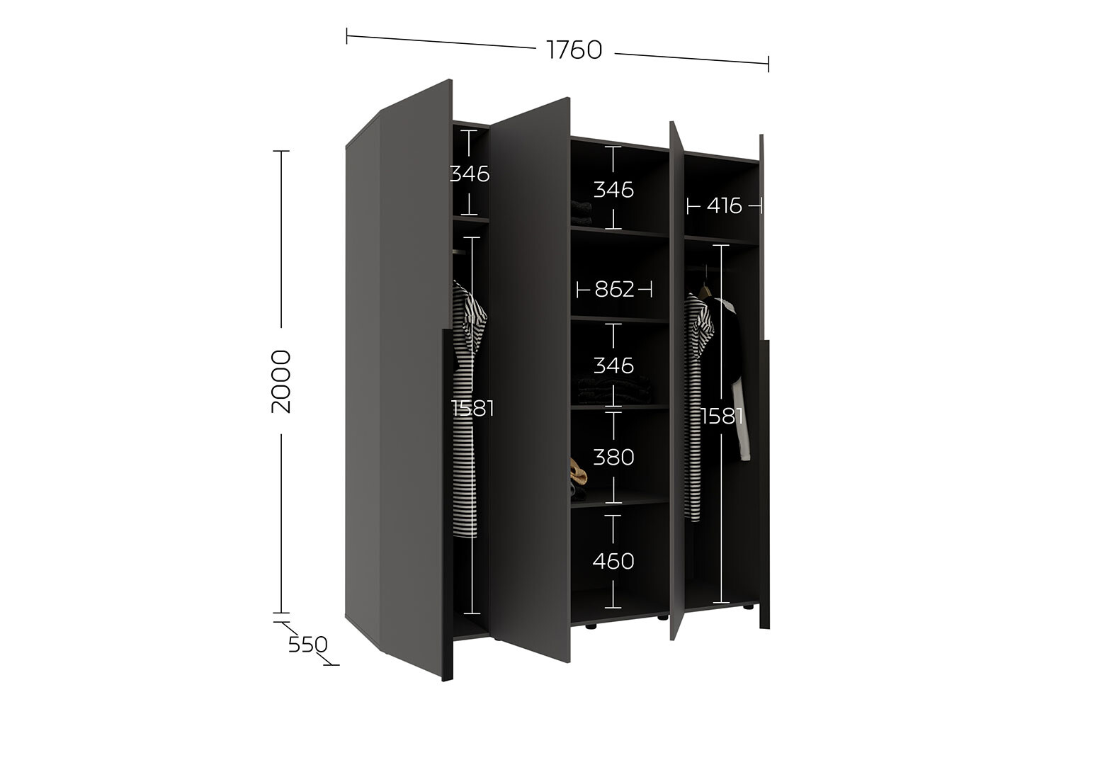 Шафа Garant Соло 4D з полицями та штангами побокам 176 см, графіт