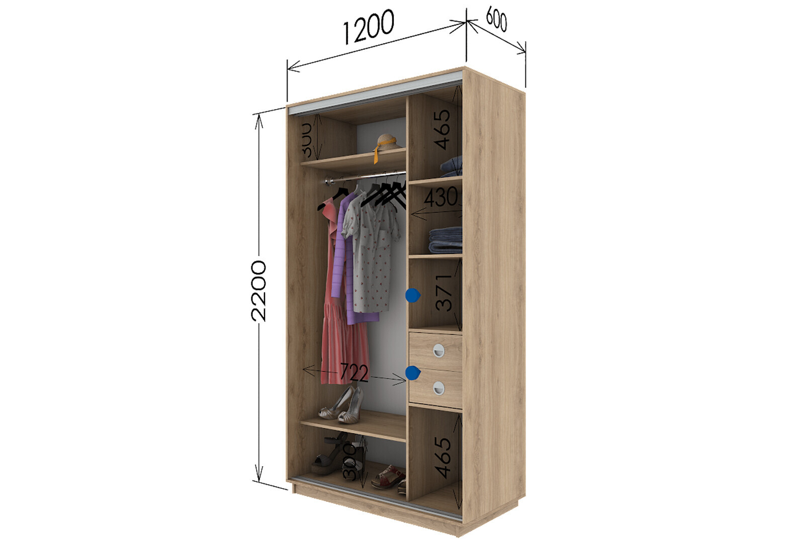 Зображення 2 - Шафа-купе Garant 2-дверна з дзеркалом 120x220x60 см дуб крафт табако
