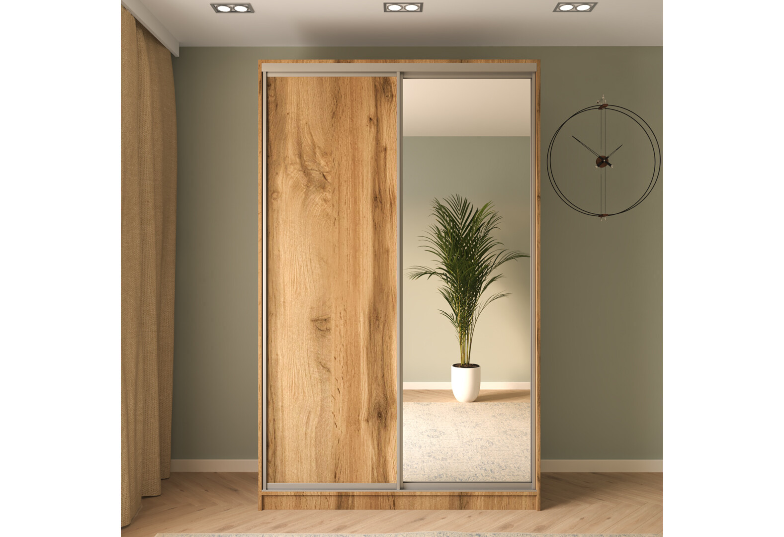 Шафа-купе MebelStar 2-дверна 1500х2400х600 із дзеркалом, дуб тахо