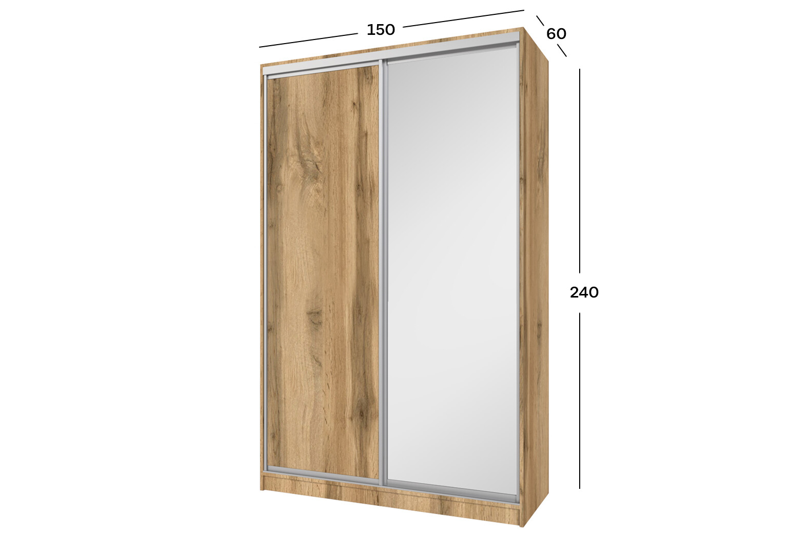 - Шафа-купе MebelStar 2-дверна 1500х2400х600 із дзеркалом, дуб тахо