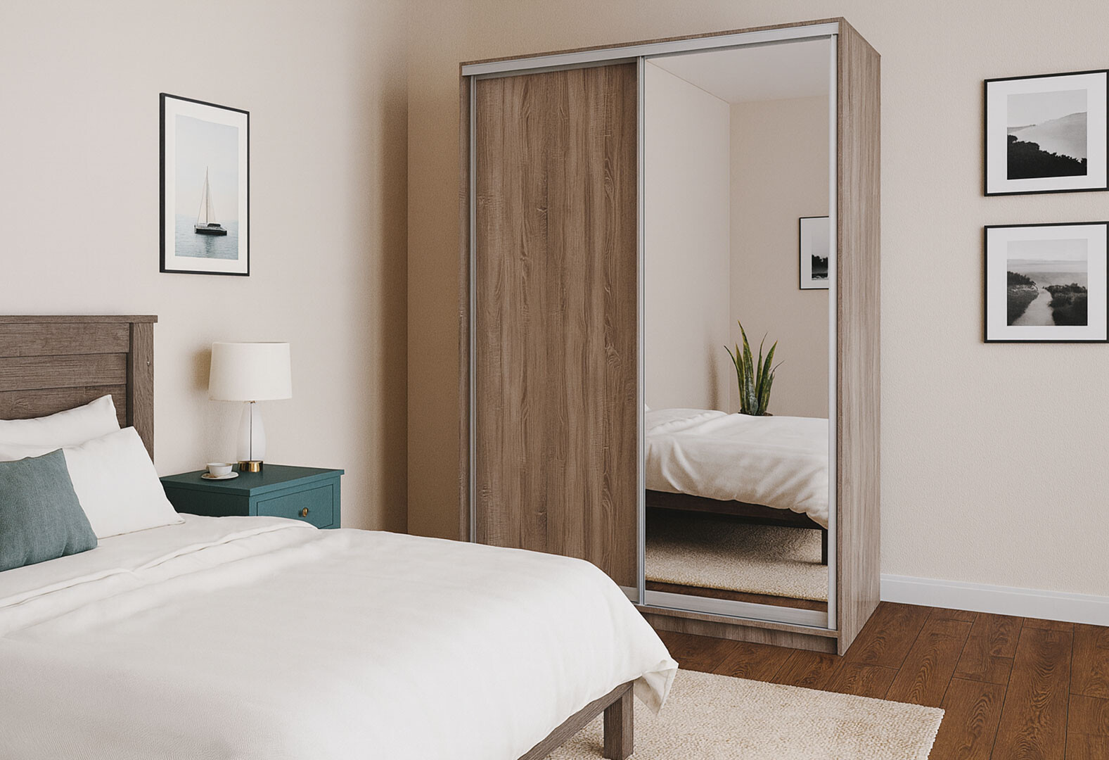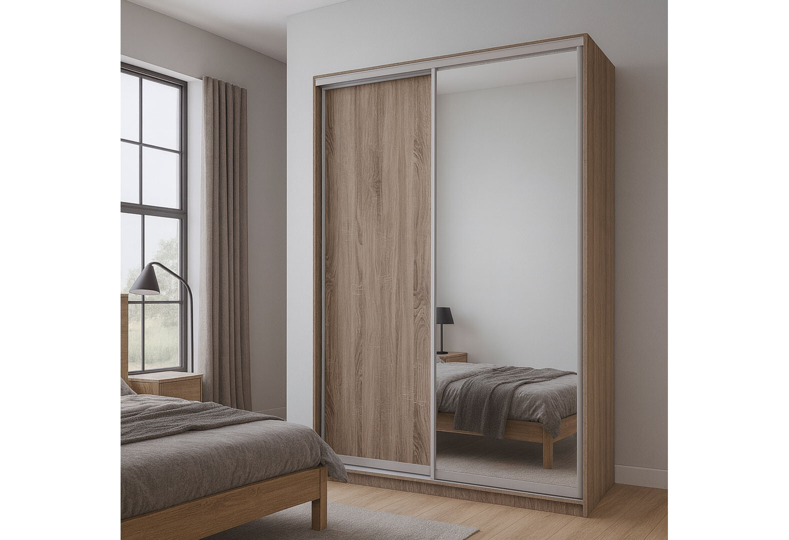 Шафа-купе MebelStar 2-дверна 1500х2100х600 із дзеркалом, дуб сонома трюфель