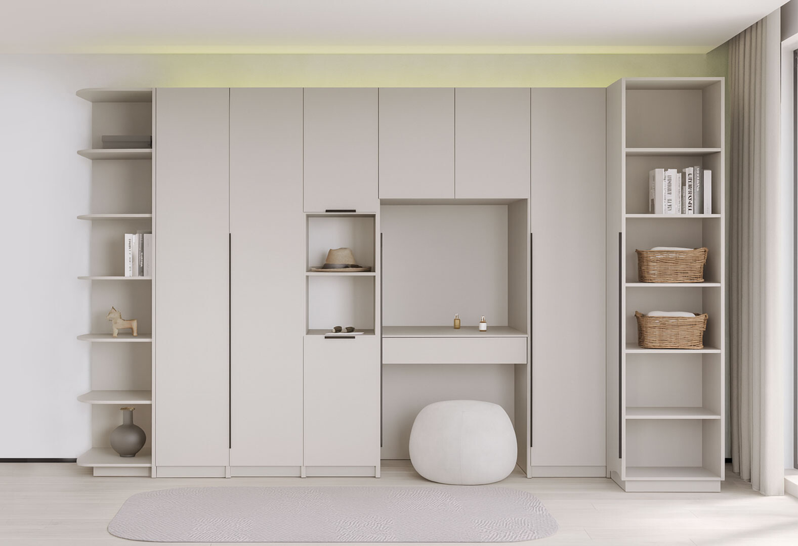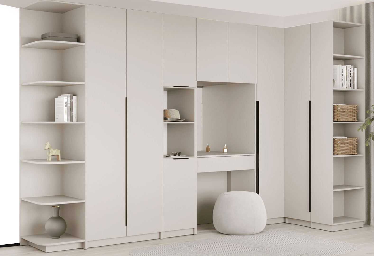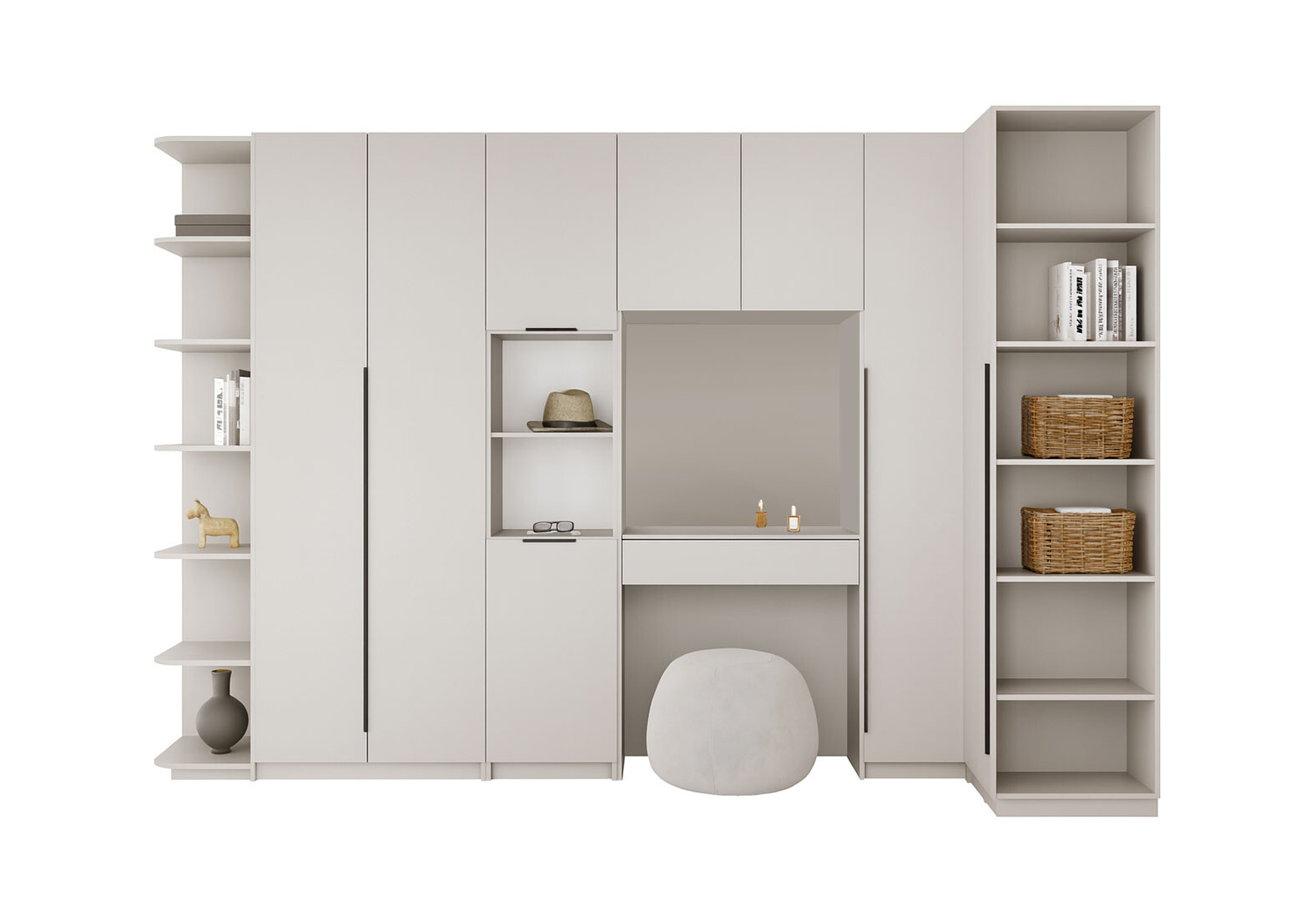 Шафа MebelStar кутова з полицями, столом та платтяним відділенням 382х130, кашемір