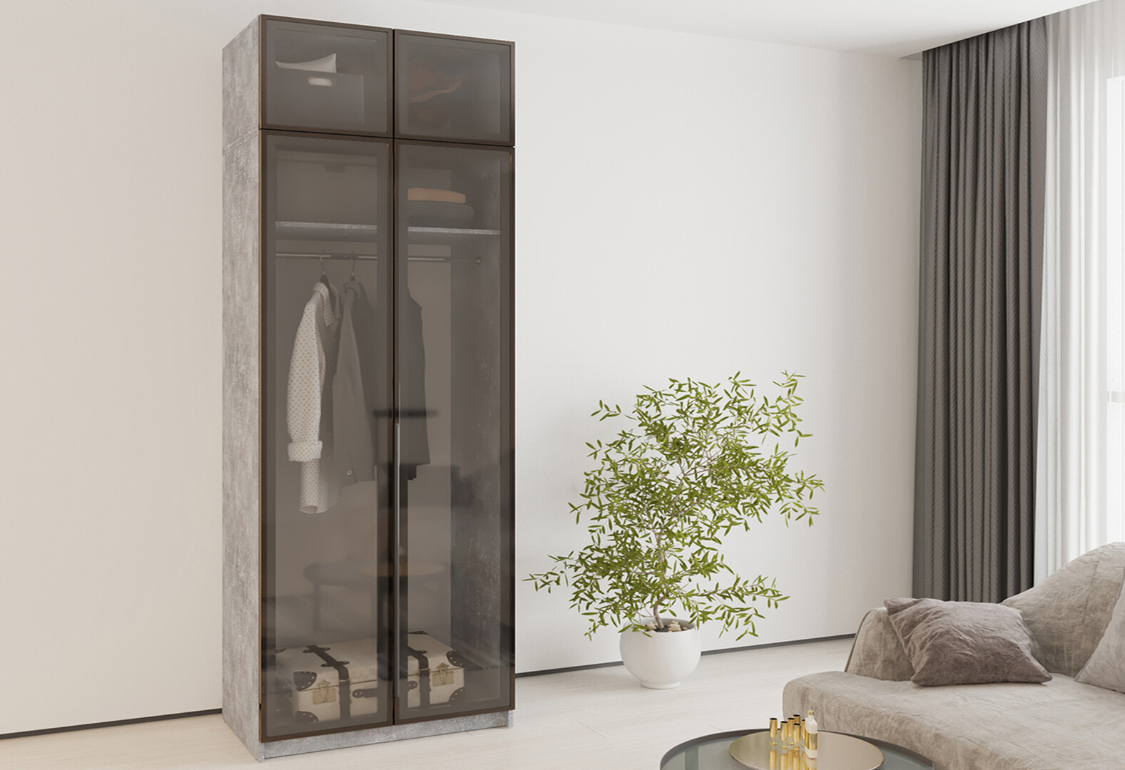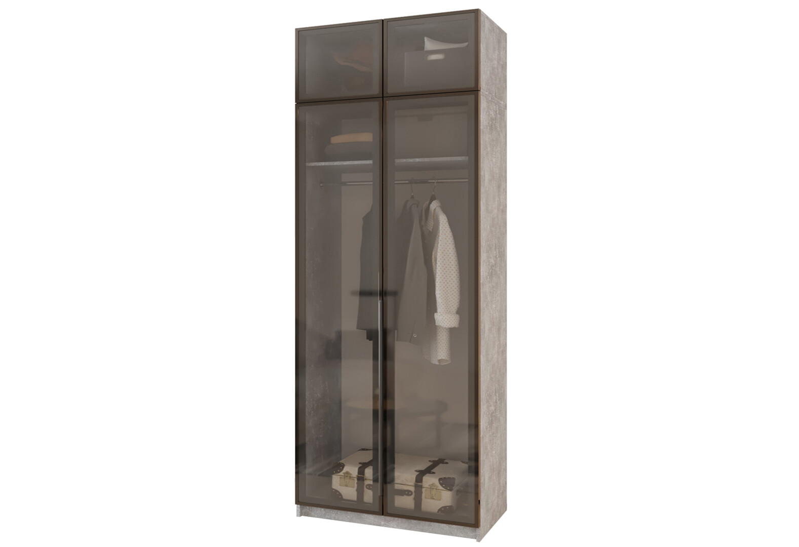 Шафа MebelStar Оскар 2-дверна з антресоллю та вітринами 100 см Бетон