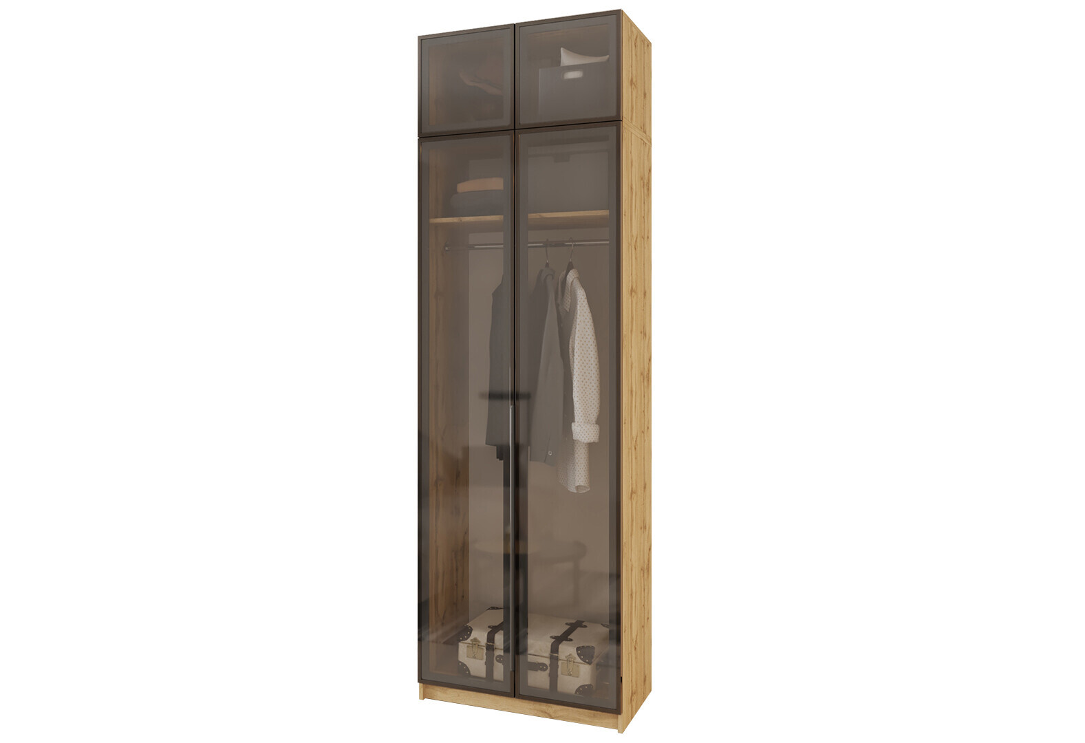 - Шафа MebelStar Оскар 2-дверна з антресоллю та вітринами 80 см Дуб тахо