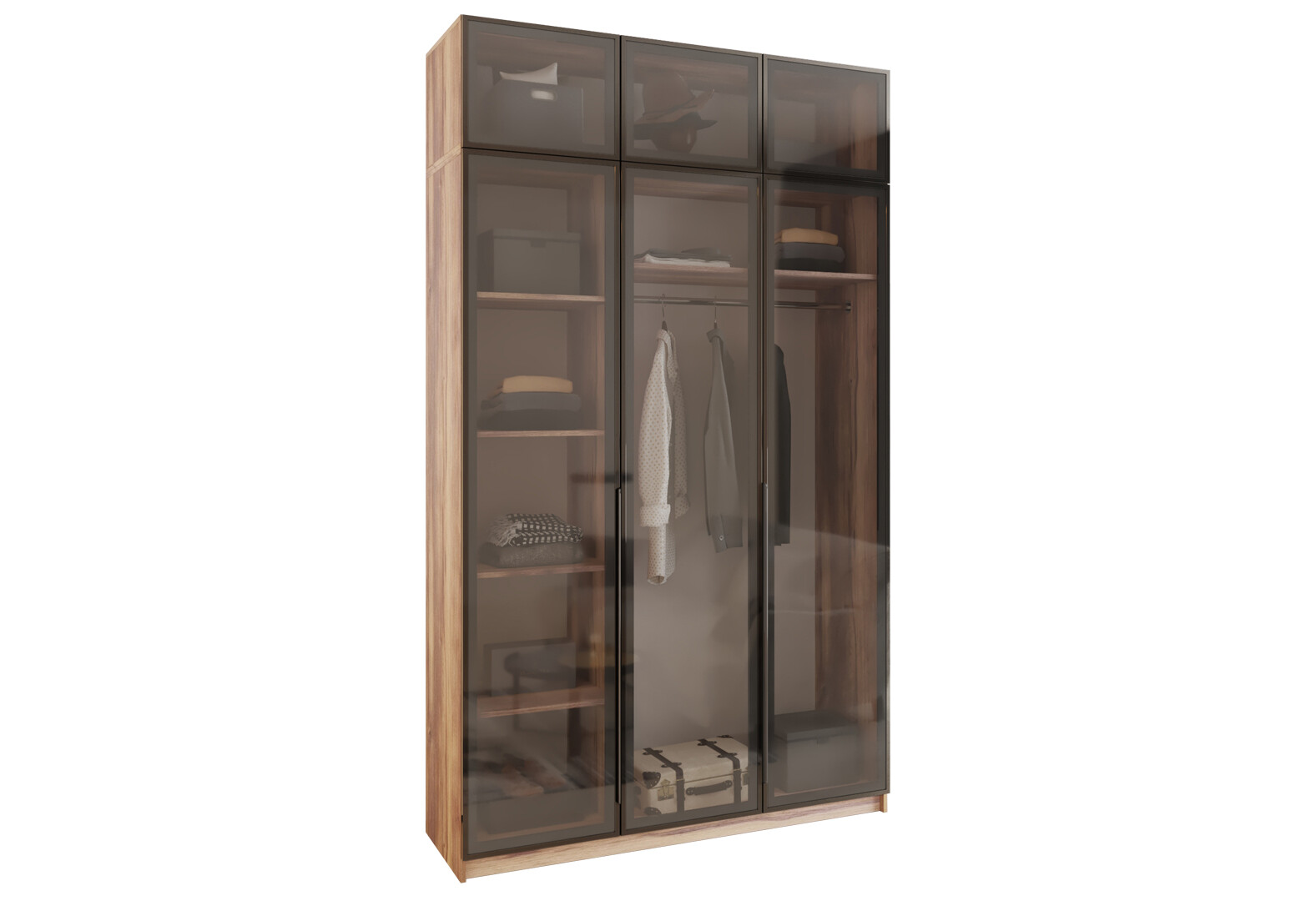 Зображення 2 - Шафа MebelStar Оскар 3-дверна з антресоллю та вітринами 150 см Дуб бурштиновий
