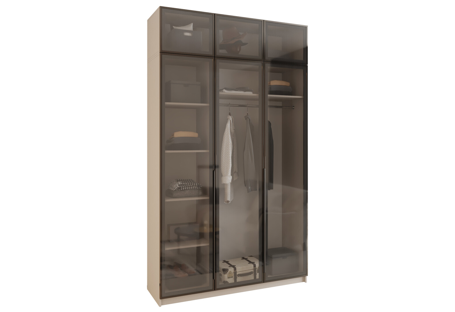 - Шафа MebelStar Оскар 3-дверна з антресоллю та вітринами 150 см Кашемір