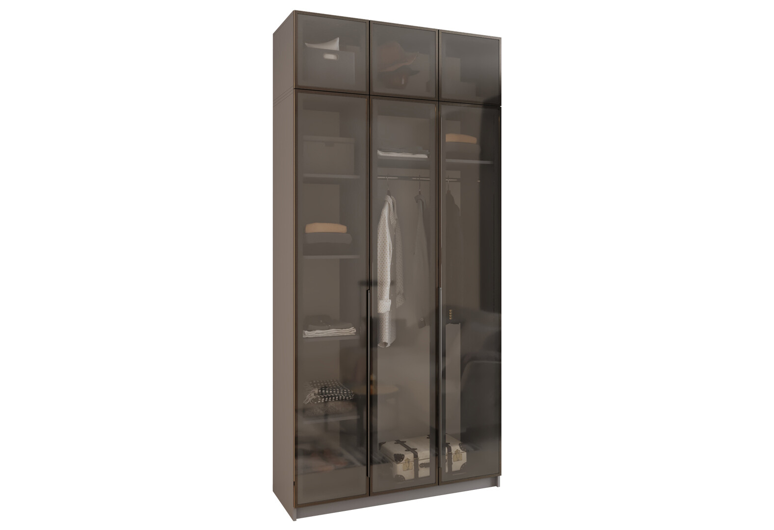 - Шафа MebelStar Оскар 3-дверна з антресоллю та вітринами 120 см Дуб рістрето