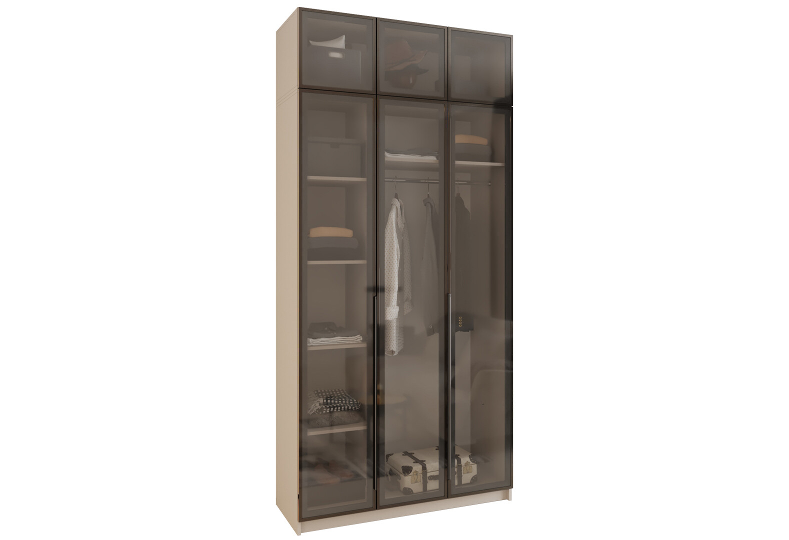 Шафа MebelStar Оскар 3-дверна з антресоллю та вітринами 120 см Кашемір