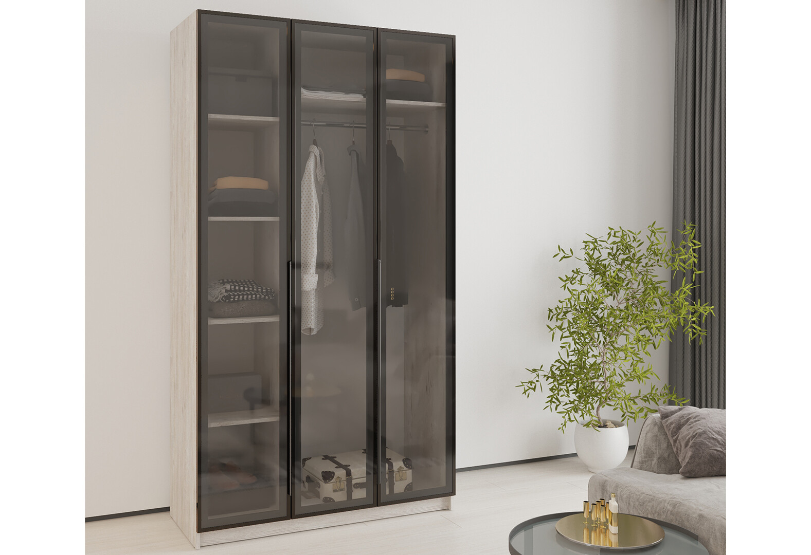 - Шафа MebelStar Оскар 3-дверна з вітринами 120 см Аляска сіра