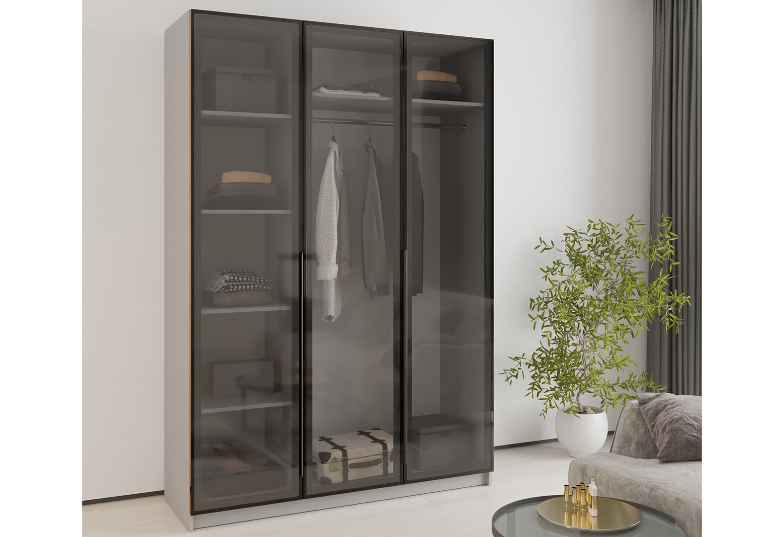 - Шафа MebelStar Оскар 3-дверна з вітринами 150 см Сіра мишка