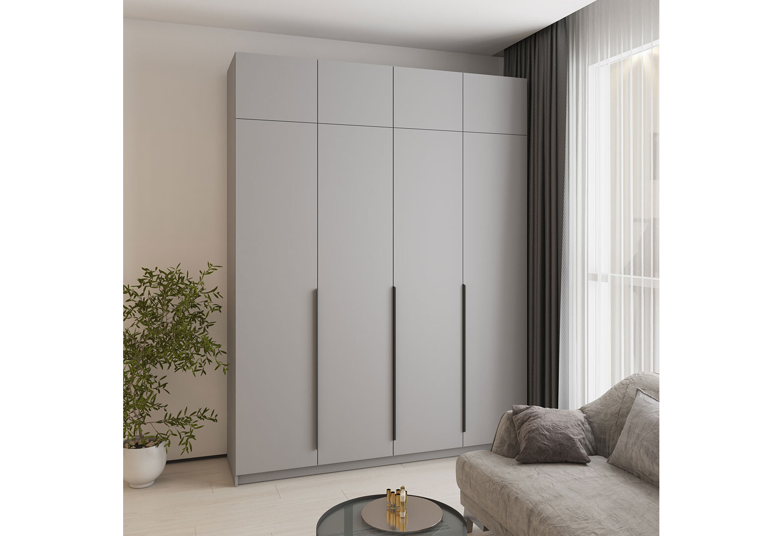 Шафа MebelStar Оскар 4-дверна з антресоллю та шухлядами 200 см Сіра мишка