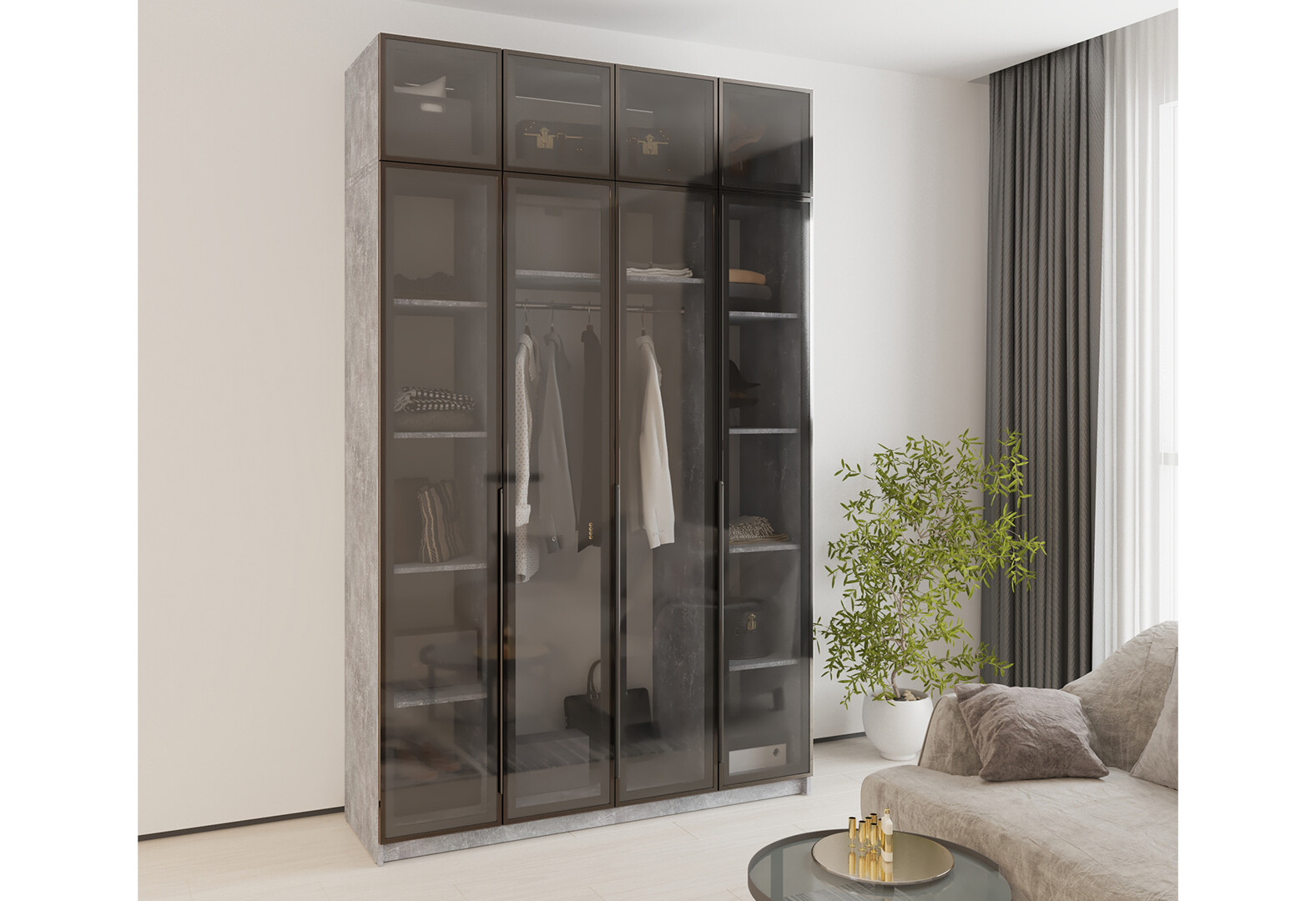 - Шафа MebelStar Оскар 4-дверна з антресоллю та вітринами 160 см Бетон