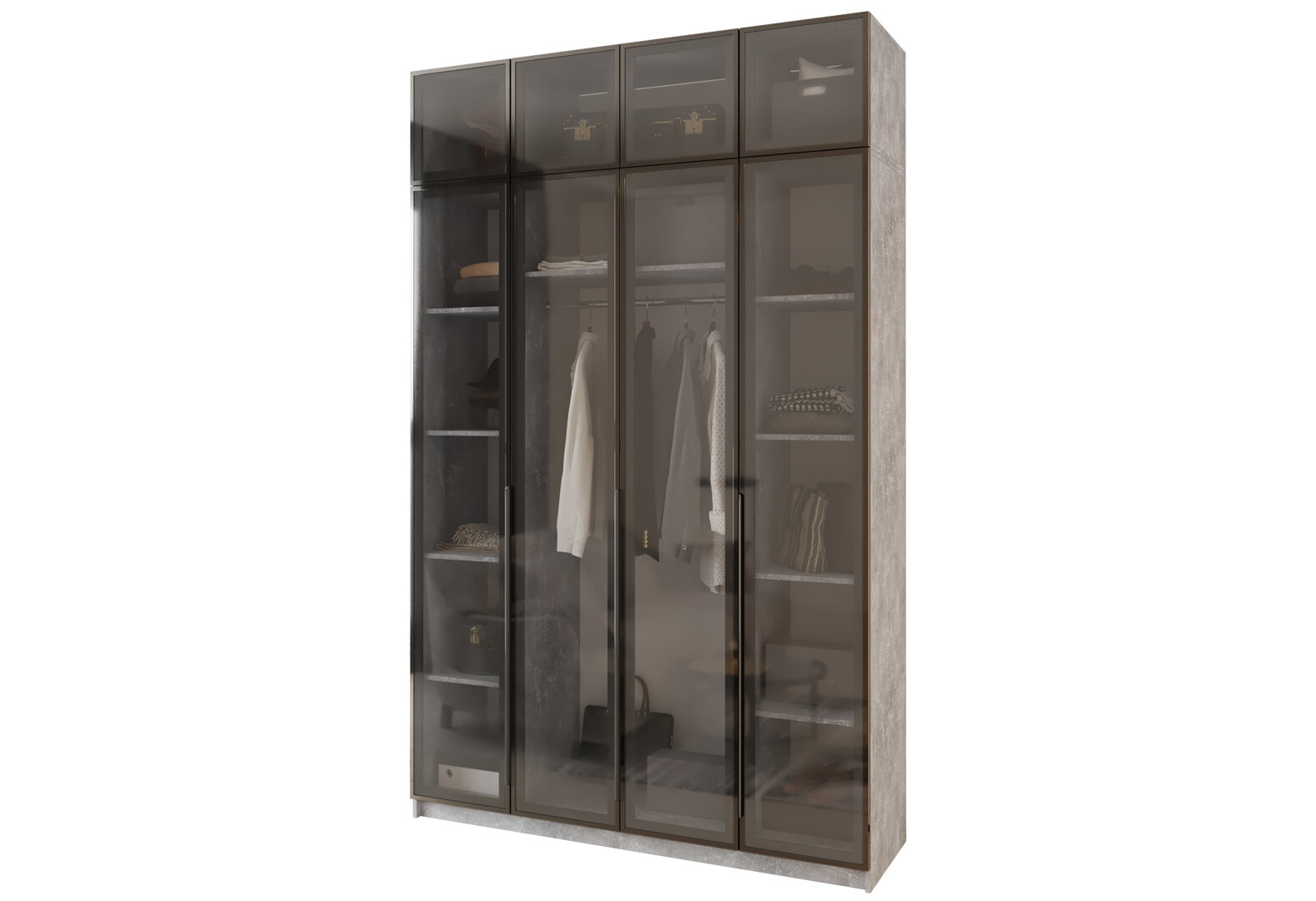 Шафа MebelStar Оскар 4-дверна з антресоллю та вітринами 160 см Бетон