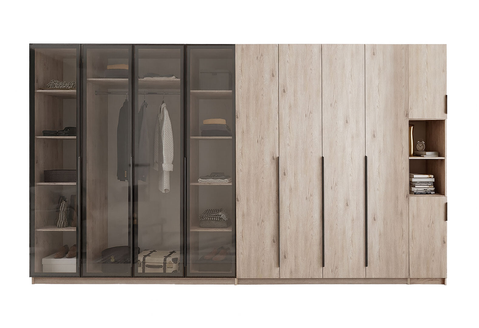 - Шафа MebelStar Оскар 9-дверна з вітринами та полицями 400 см, аляска сіра