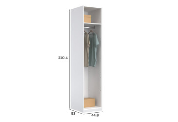 Шафа MiroMark Ідеа / Idea Кутове закінчення ліве 53 см в білому глянці – це стильний та функціональний елемент для вашого інтер'єру. Виготовлена з ламінованої ДСП, вона поєднує в собі сучасний дизайн та практичність, що робить її ідеальним вибором для будь-якої кімнати. Завдяки своїм компактним розмірам, ширина 53 см, висота 210.6 см та глибина 36.6 см, ця шафа легко впишеться навіть у невеликі простори, забезпечуючи при цьому достатньо місця для зберігання речей. Білий глянець надає їй елегантного вигляду, а також візуально розширює простір, що особливо важливо для малогабаритних квартир.