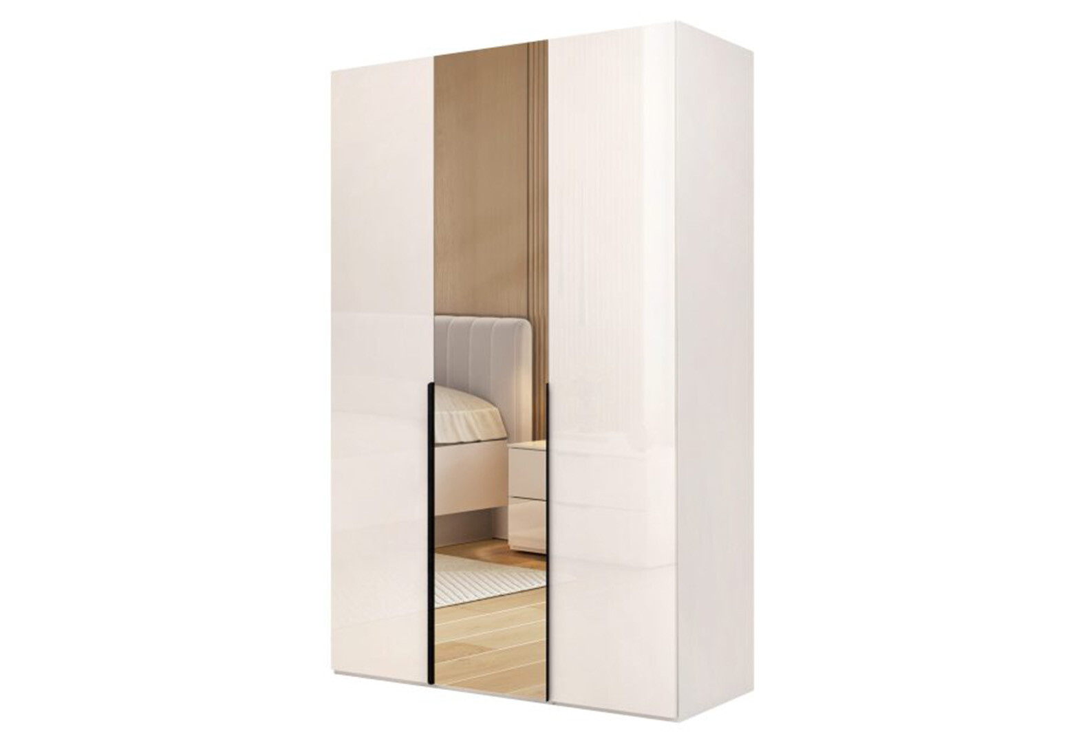 - Шафа MiroMark Лорі / Lori 3-дверна з дзеркалом 134,4 см глянець кашемір