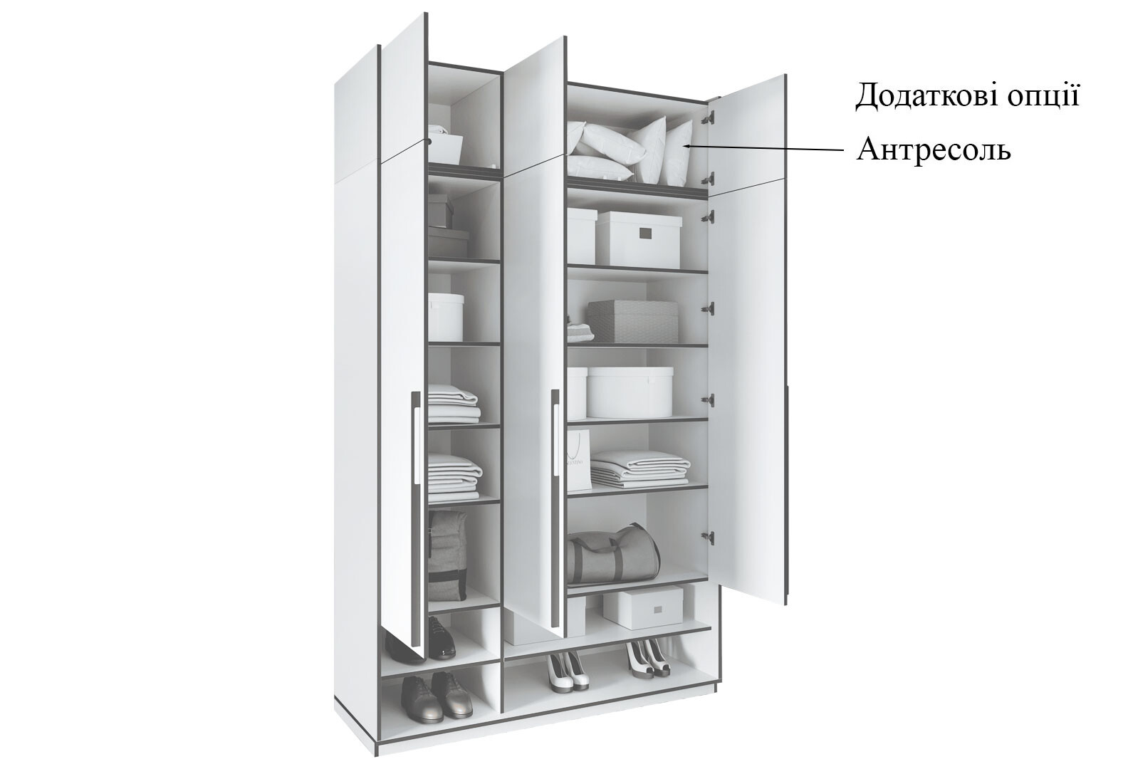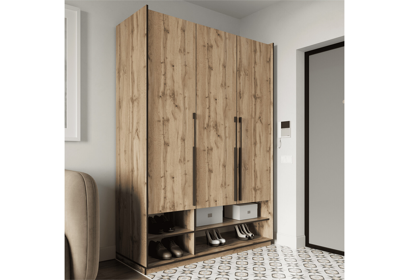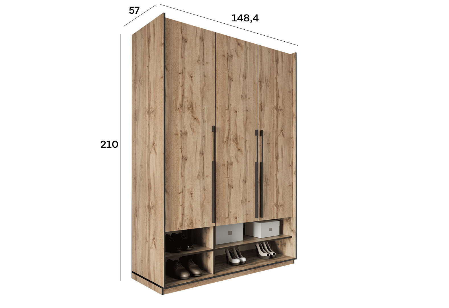Шафа Moreli Ramo / Рамо R-0005 3-дверна з полицями 148,4 см, дуб аппалачі