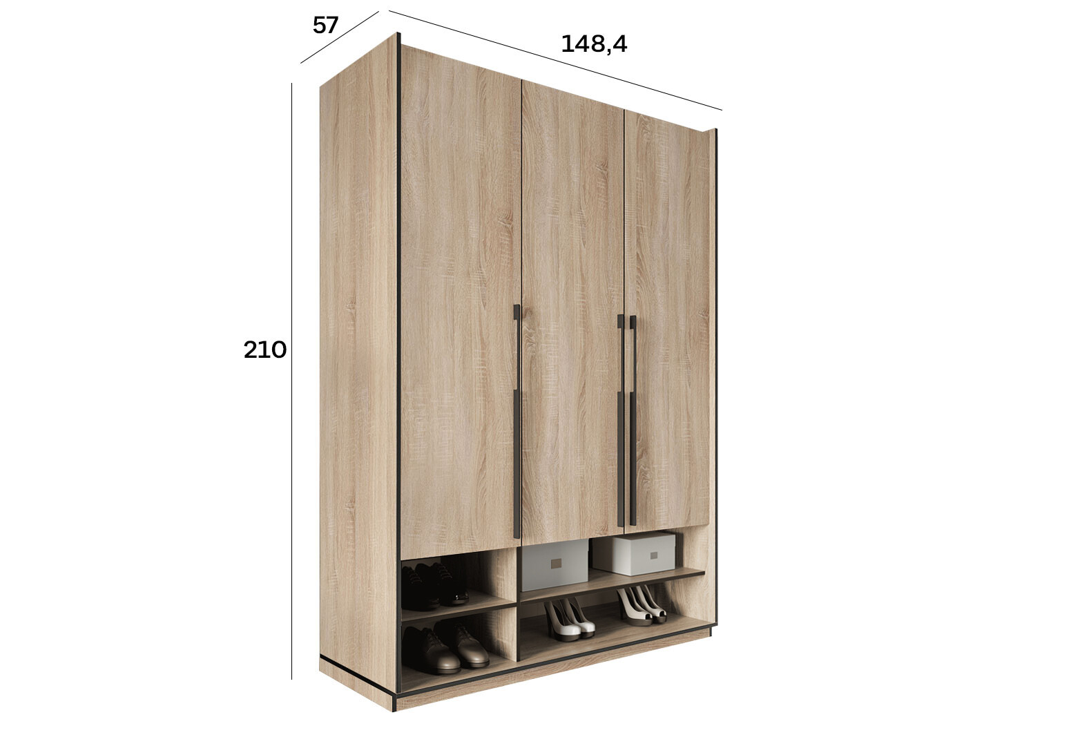 Шафа Moreli Ramo / Рамо R-0005 3-дверна з полицями 148,4 см, дуб сонома