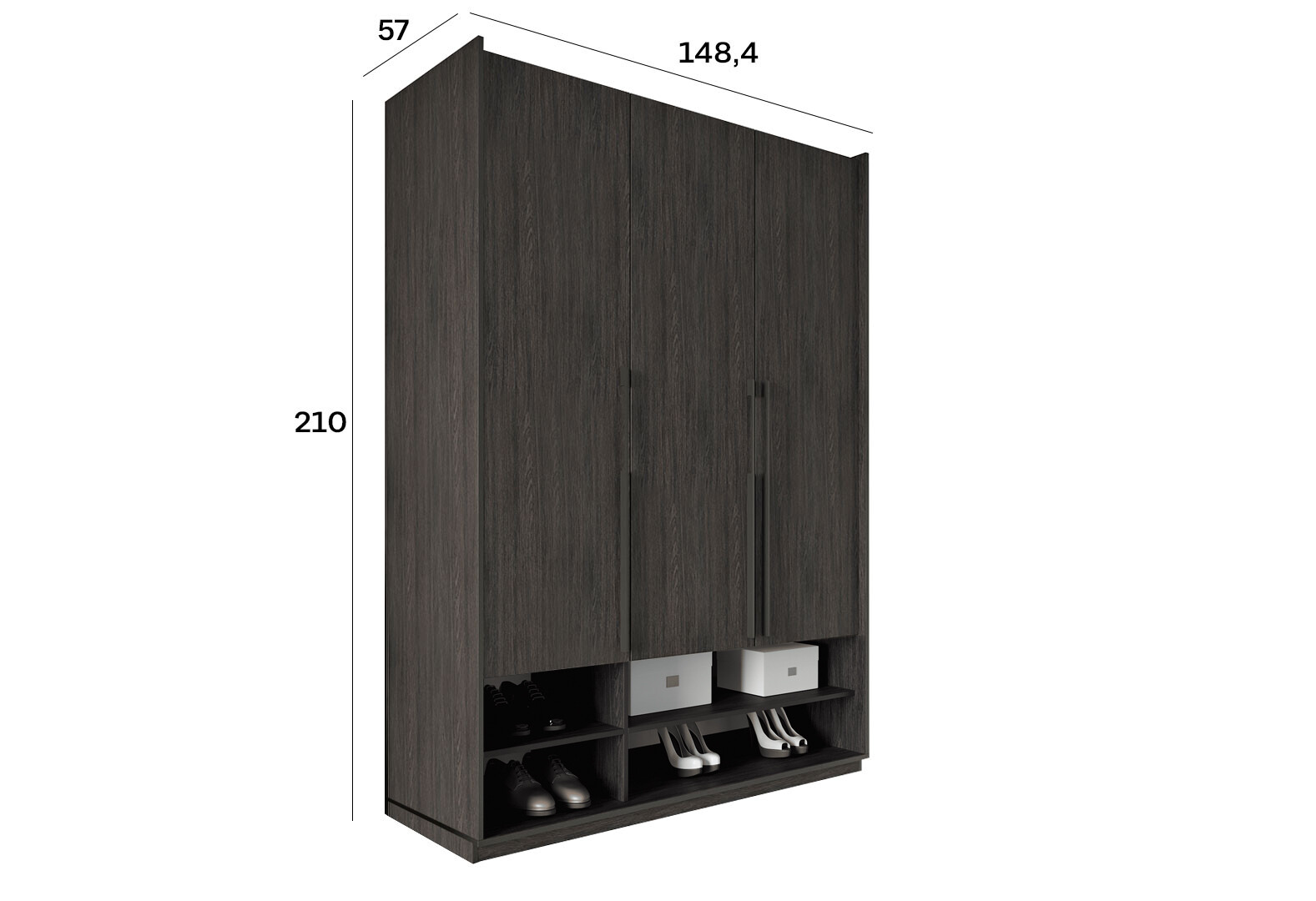 Зображення 6 - Шафа Moreli Ramo / Рамо R-0005 3-дверна з полицями 148,4 см, венге