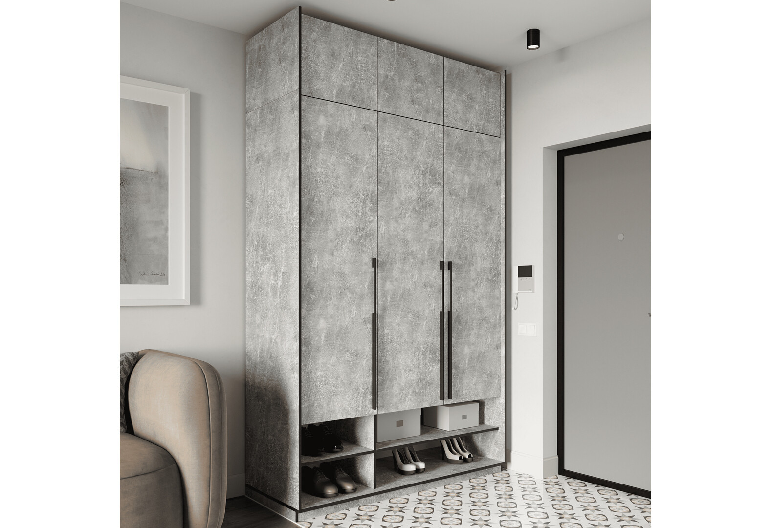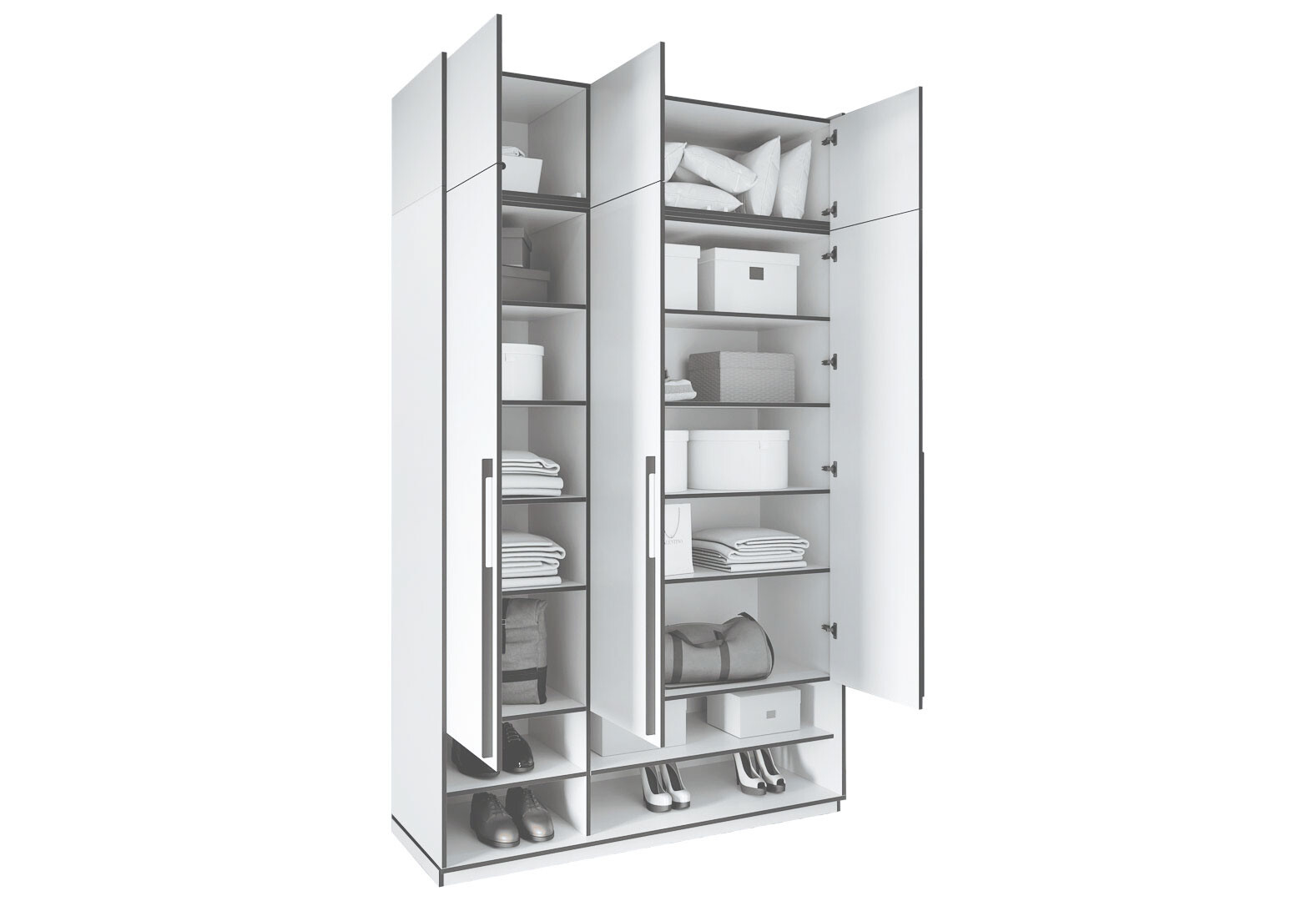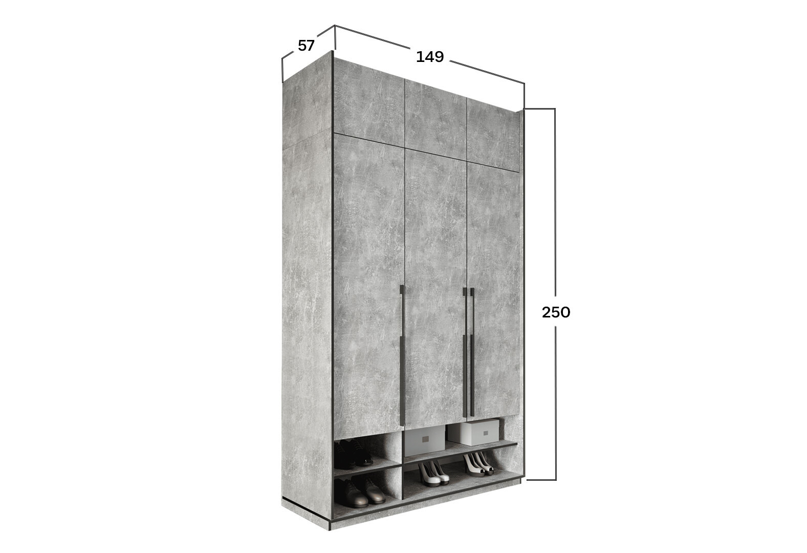 Зображення 3 - Шафа Moreli Ramo / Рамо R-0005 3-дверна з полицями та антресоллю 148,4 см, бетон
