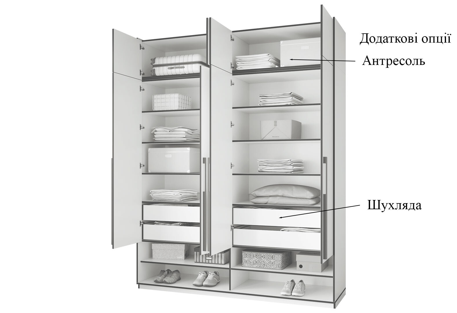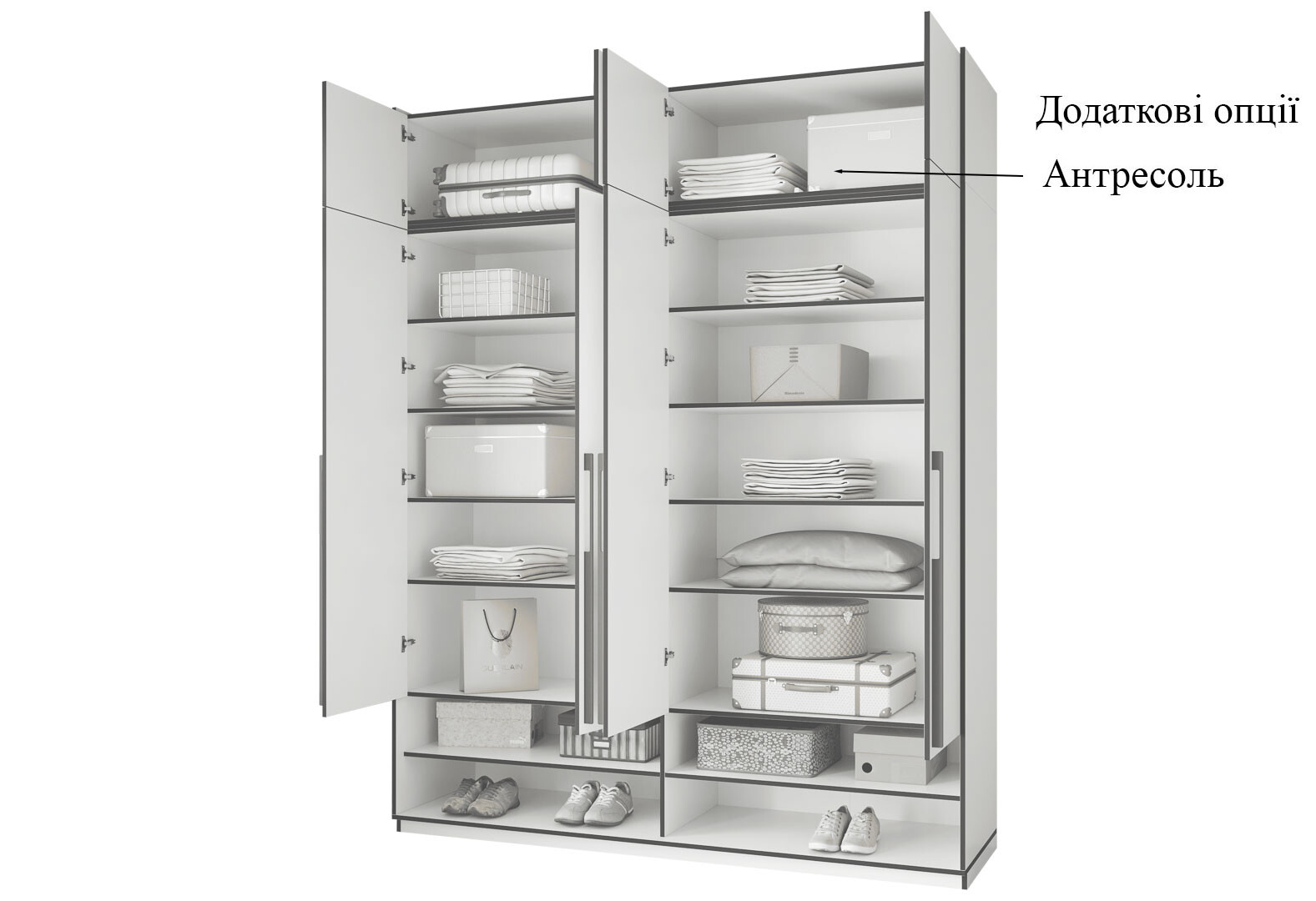 Зображення 6 - Шафа Moreli Ramo / Рамо R-0007 4-дверна з полицями 196,8 см, дуб гранж пісочний