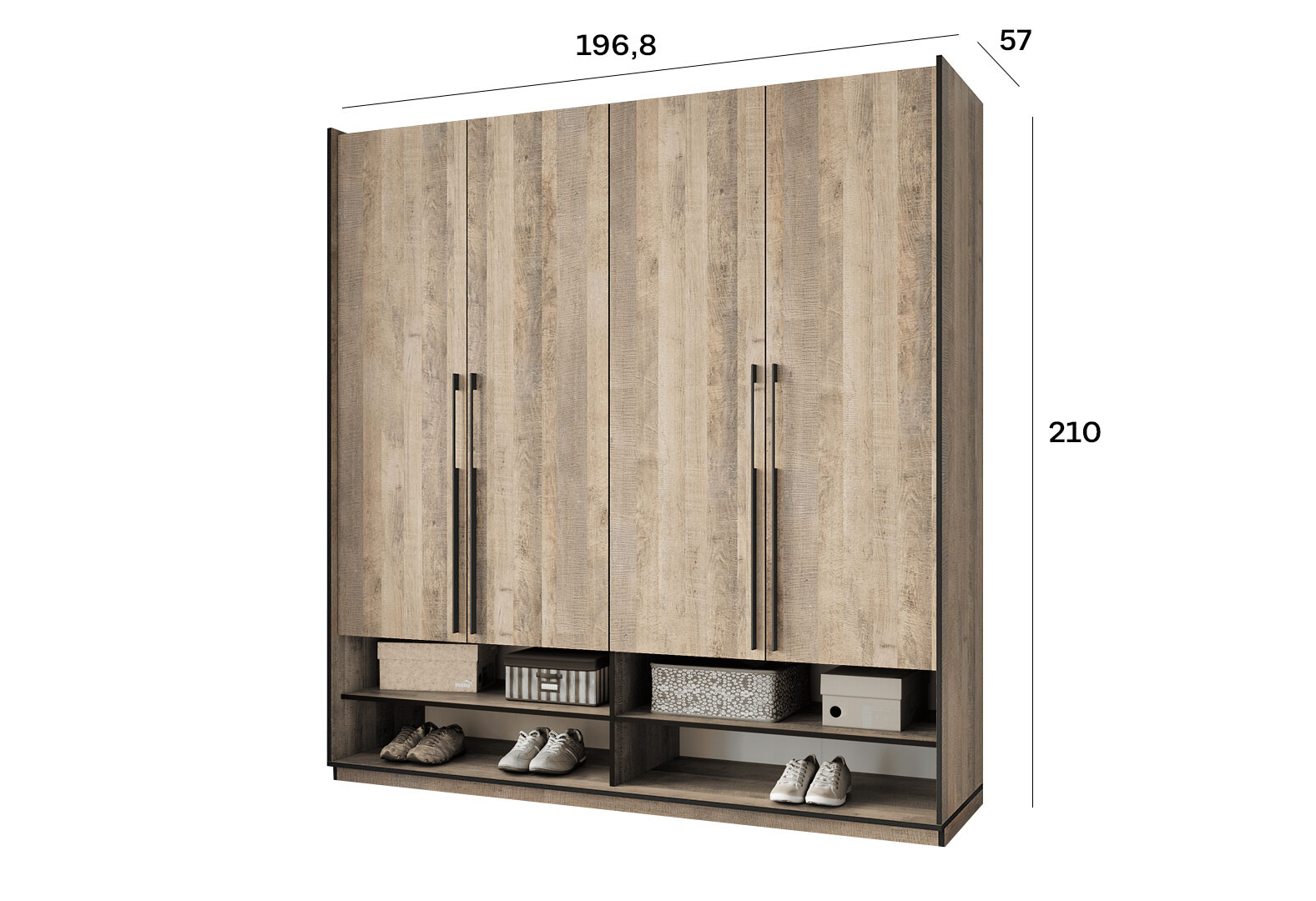 Шафа Moreli Ramo / Рамо R-0007 4-дверна з полицями 196,8 см, дуб гранж пісочний