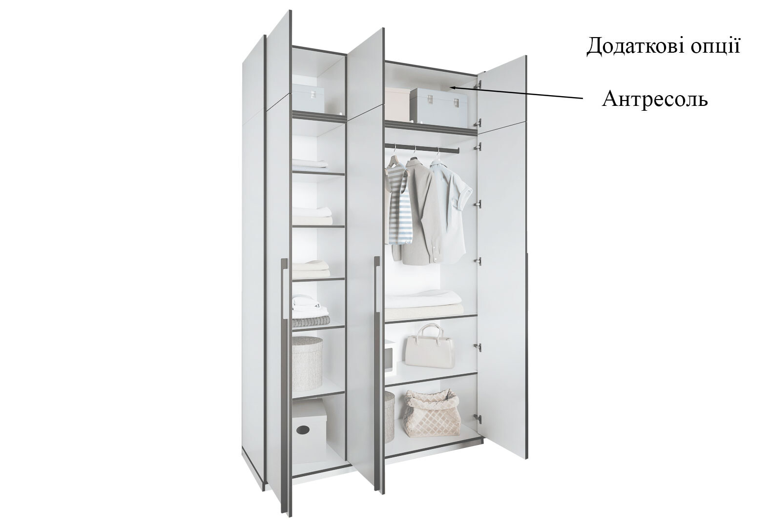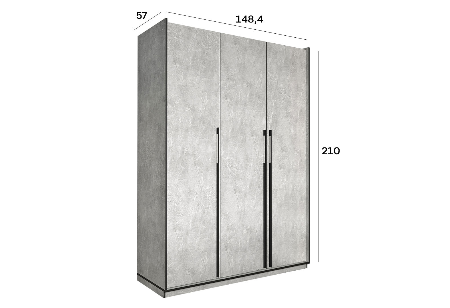 Шафа Moreli Ramo / Рамо R-0016 3-дверна зі штангою та полицями 148,4 см, бетон