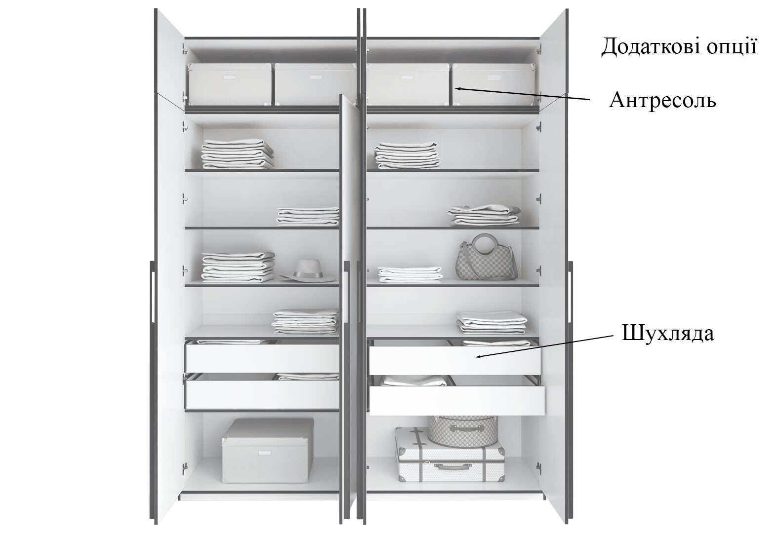 Шафа Moreli Ramo / Рамо R-0017 4-дверна з полицями 196,8 см, венге