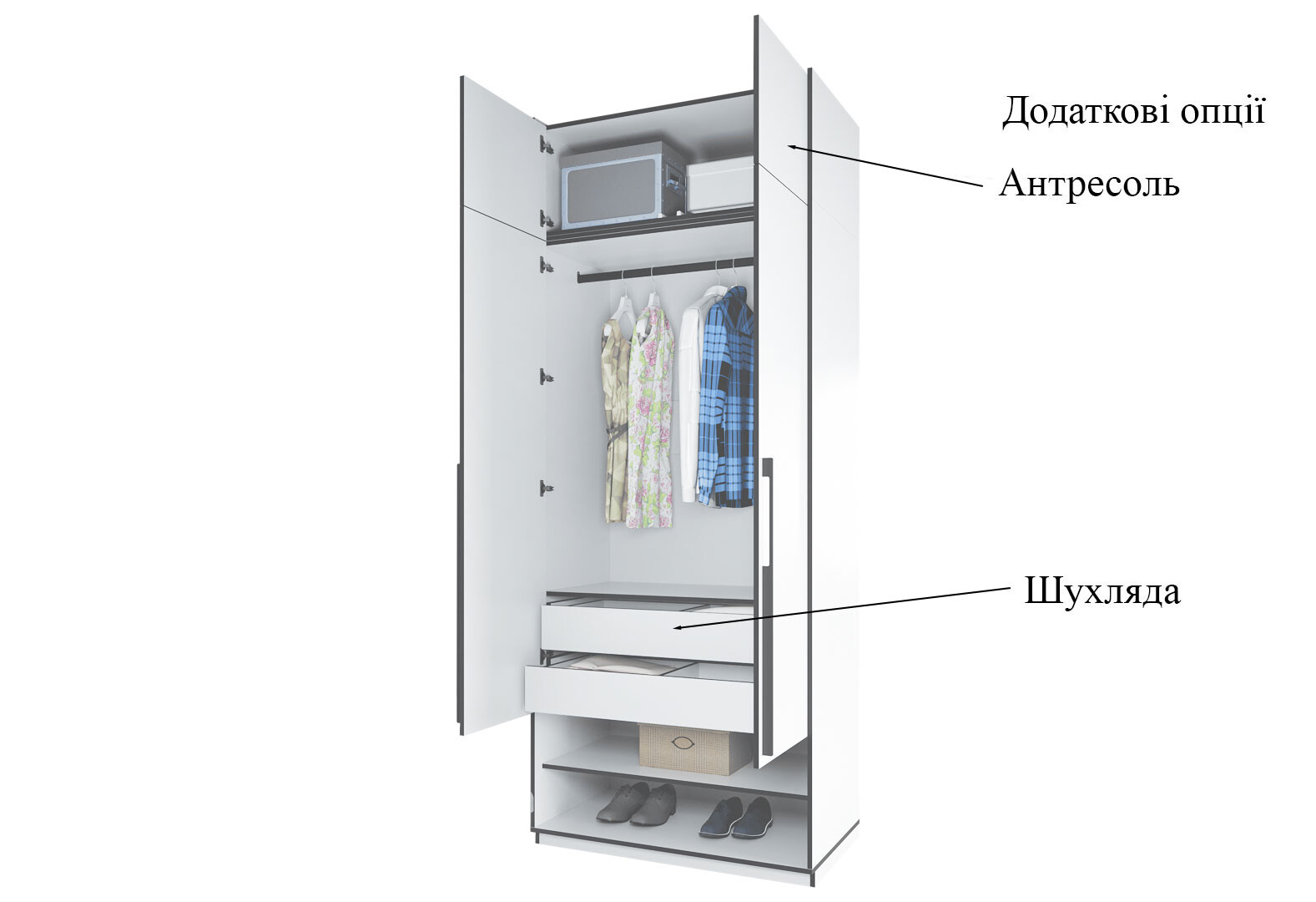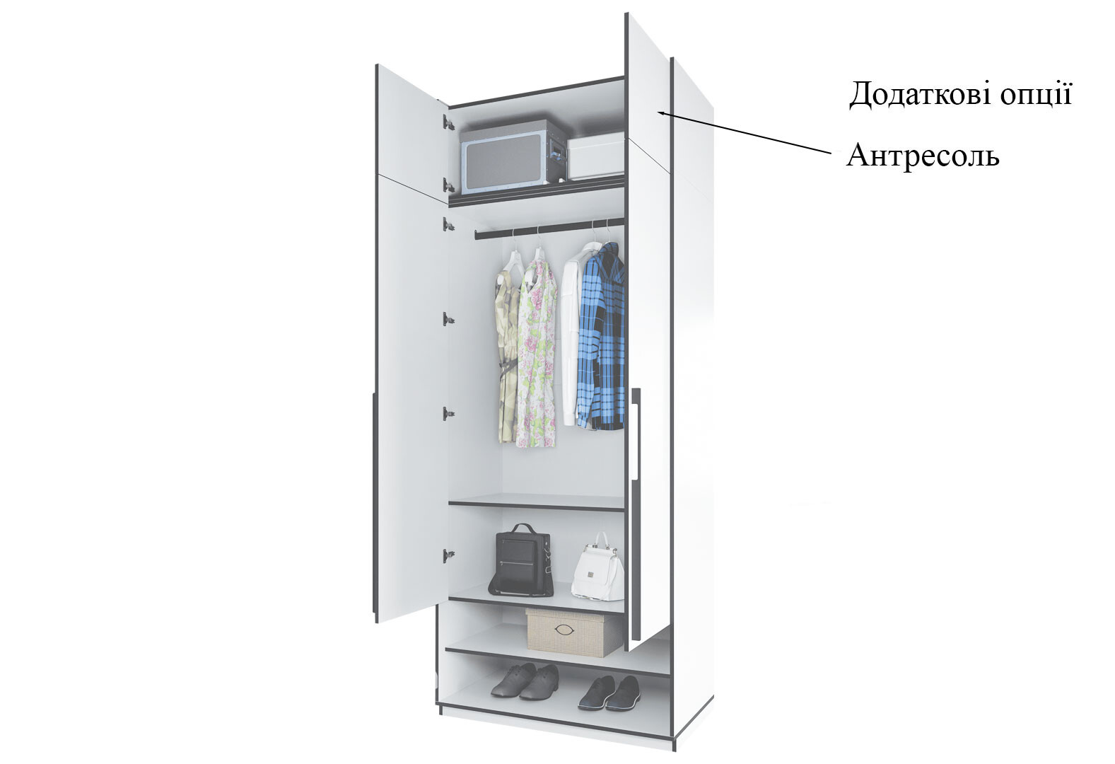 Зображення 3 - Шафа-пенал Moreli Ramo / Рамо R-0004 2-дверна зі штангою та полицями 100,1 см, антрацит