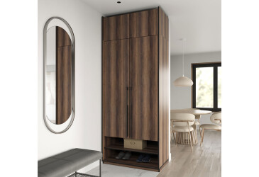 - Наповнення корпусу: наявність штанги та полиць дозволяє зручно організувати зберігання одягу та аксесуарів, що робить цю шафу функціональною та практичною.