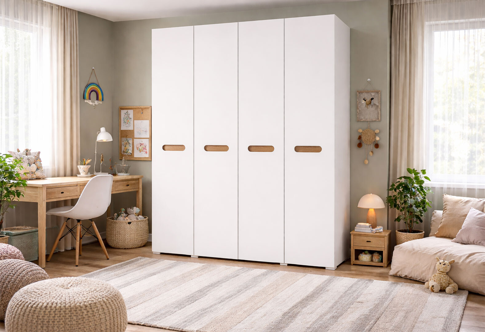 Шафа Світ Меблів Бянко 4-дверна 180 см, Біла з вставкою дуб аппалачі