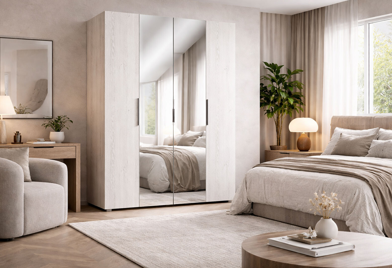 Шафа Світ Меблів Ромбо 4-дверна з дзеркалом 180 см Артвуд світлий