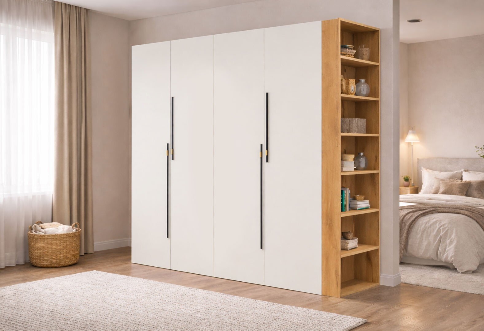 Шафа Світ Меблів Спейс чотиридверна з боковими полицями 180х220х57 см, дуб аппалачі / кашемір