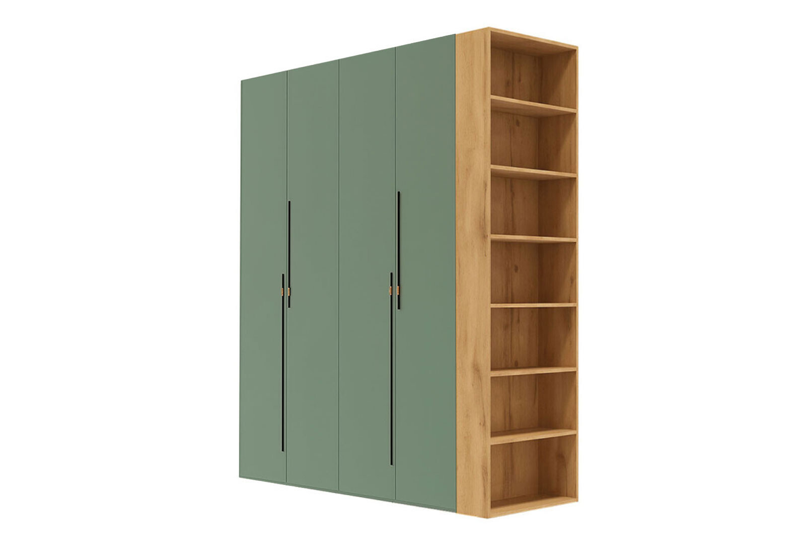 Шафа Світ Меблів Спейс чотиридверна з боковими полицями 180х220х57 см, дуб аппалачі / зелений димчастий