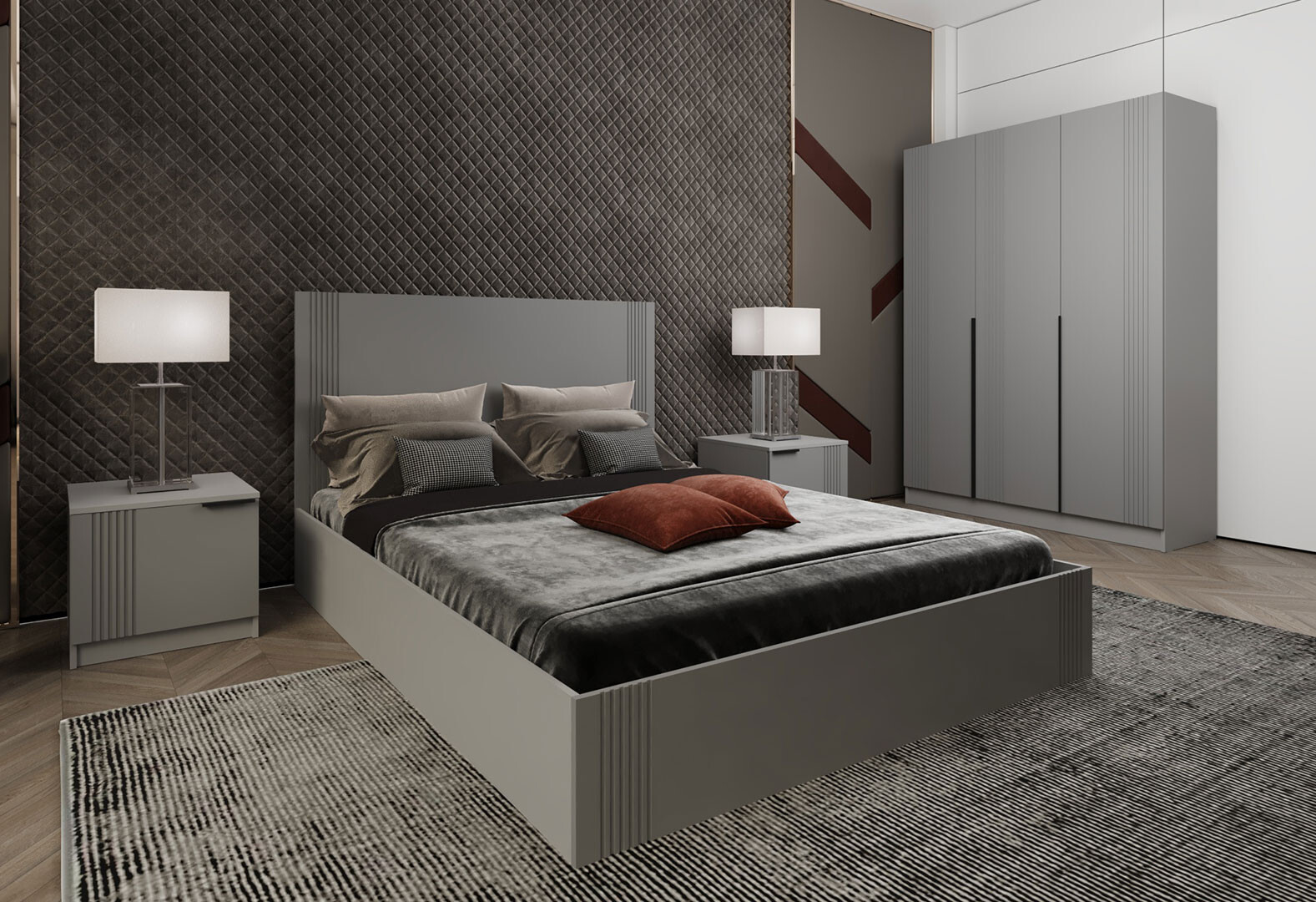 - Спальня АРС Комплект в спальню з шафою 3Д сірий / сірий RAL 7004 Viant