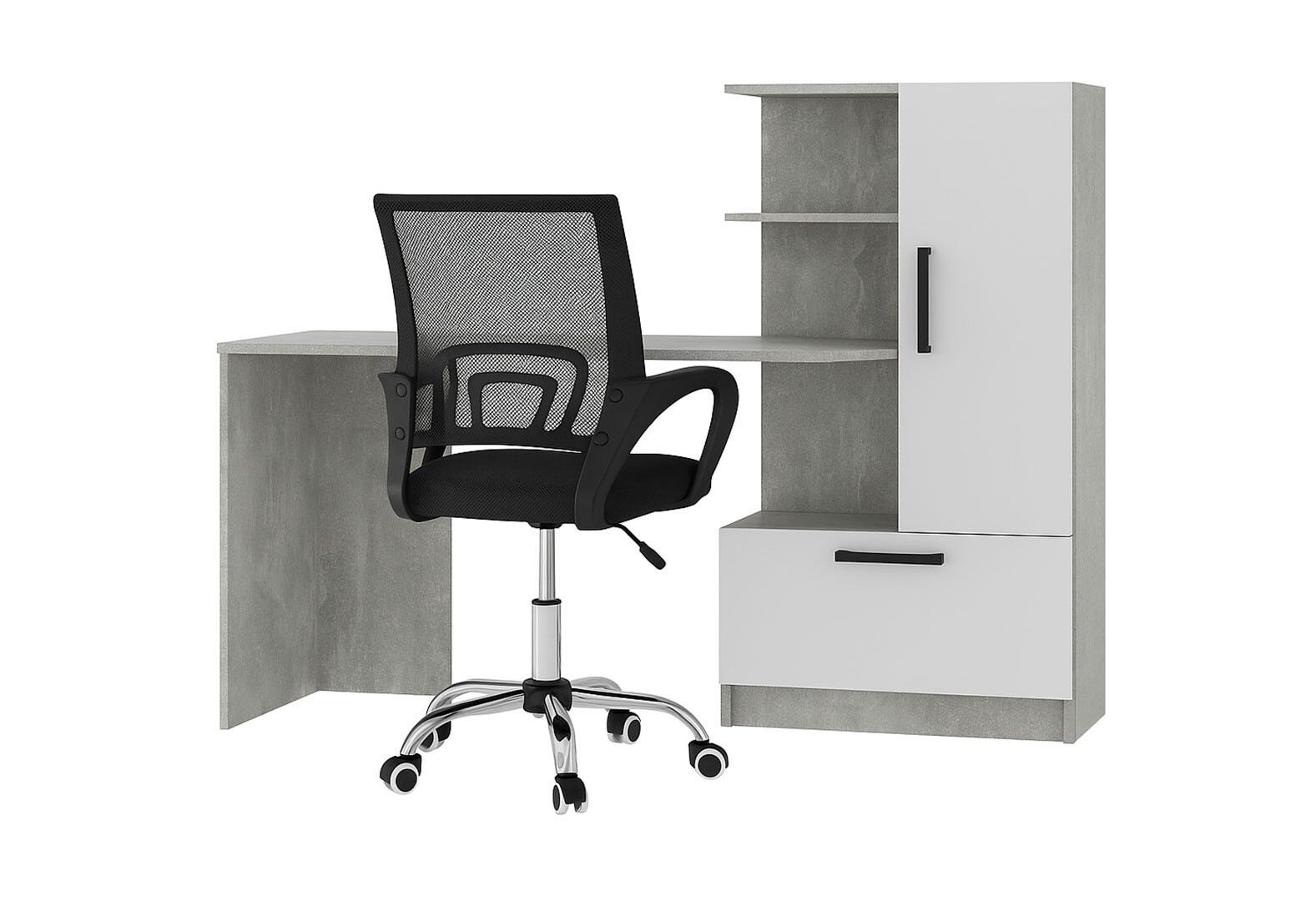 Стіл комп'ютерний Garant Стандарт 150x59 см зі стелажем, Індастріал / Німфея альба збірка права + крісло Веб чорне