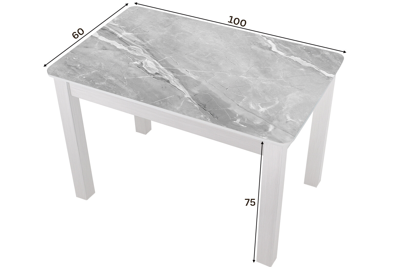 Стіл кухонний Jam Бостон 100 см, біле дерево / скло діамант 78 М
