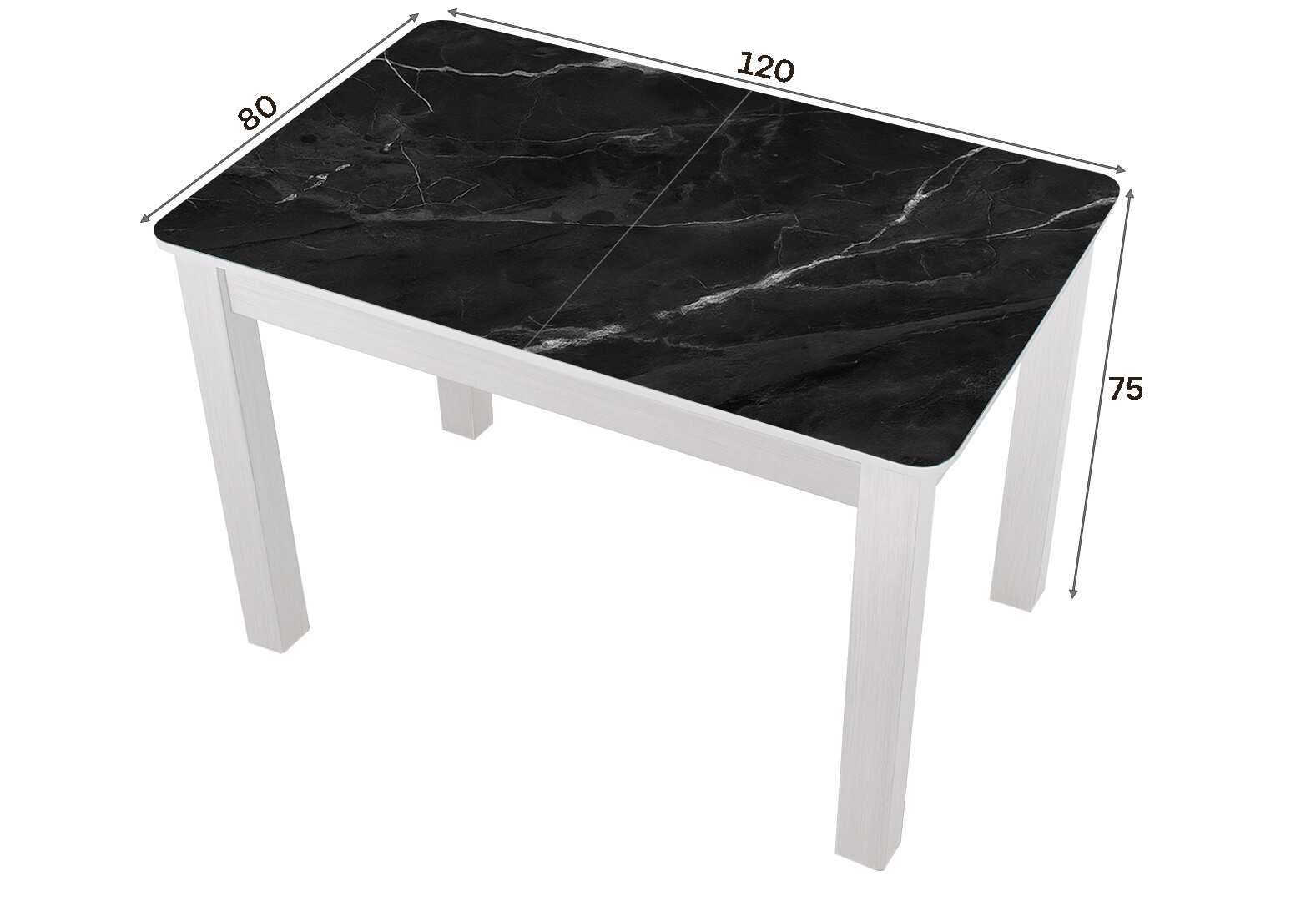Стіл кухонний Jam Бостон А розкладний 120 / 155 см, біле дерево / скло діамант 87 М