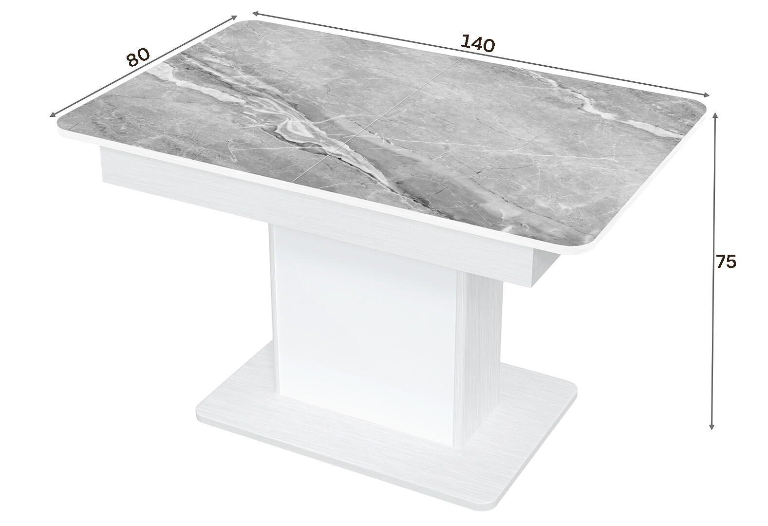 Стіл кухонний Jam Бостон Т розкладний 140 / 180 см, біле дерево / скло діамант 78 М