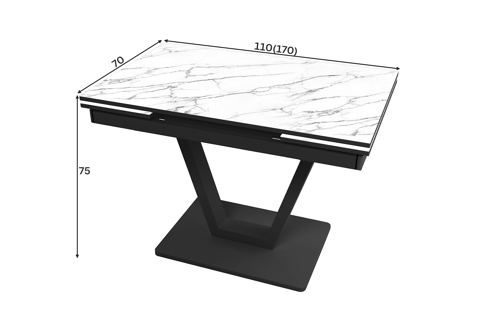 Стіл кухонний Jam Maxi V / Максі В розкладний 110 / 170 см, чорний / діамант 66 М