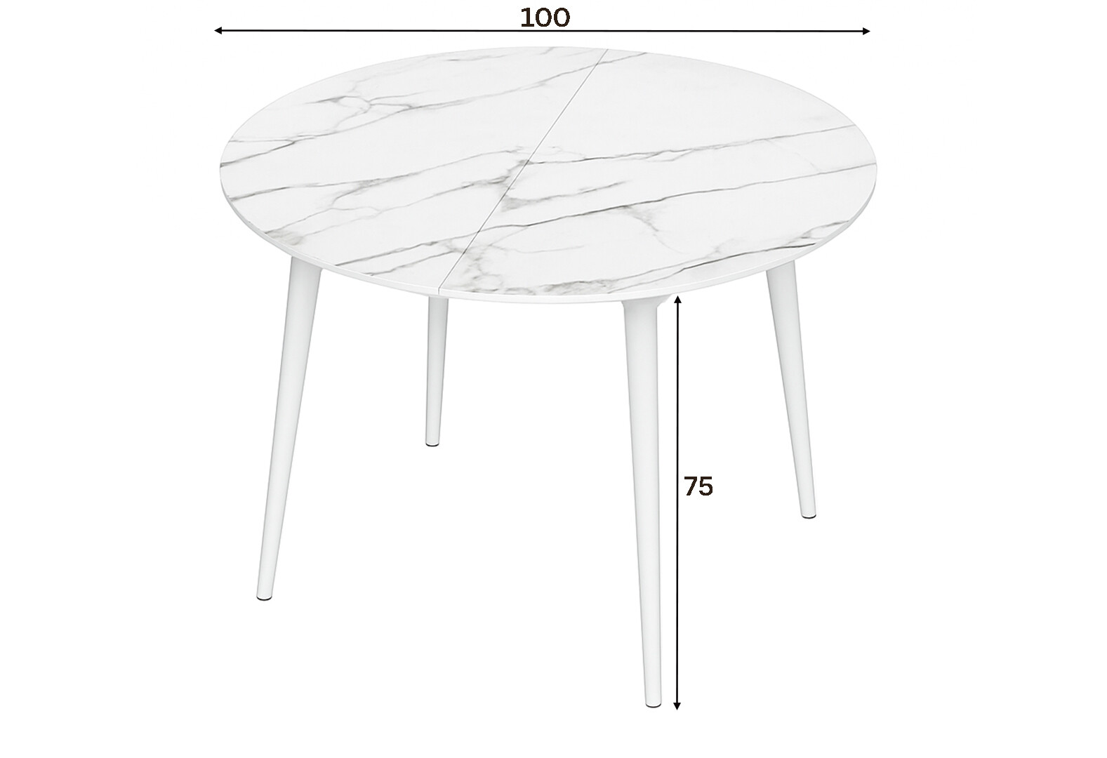 Стіл кухонний Jam Oliver розкладний 100 / 135 см, білий / скло діамант 66 М