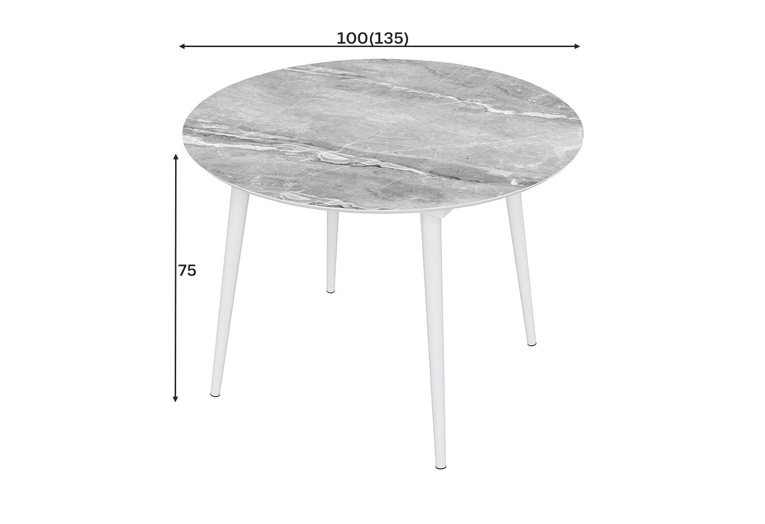 Стіл кухонний Jam Oliver розкладний 100 / 135 см, білий / скло діамант 78 М