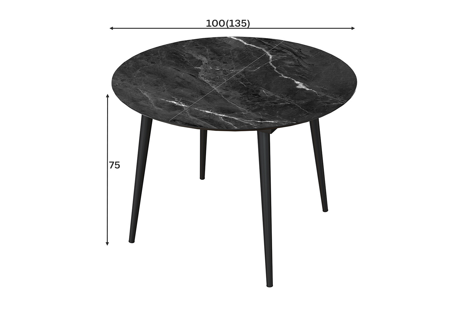 Стіл кухонний Jam Oliver розкладний 100 / 135 см, чорний / скло діамант 87 М