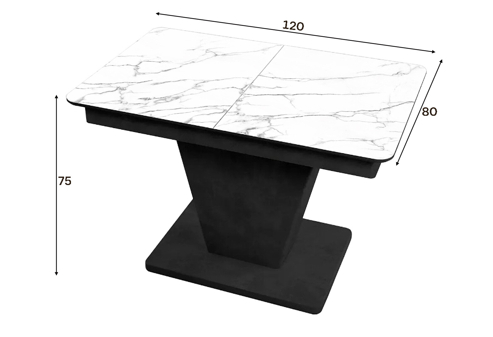 Зображення 3 - Стіл кухонний Jam Slide / Слайд розкладний 120 / 160 см, бетон чорний / скло діамант 66 М