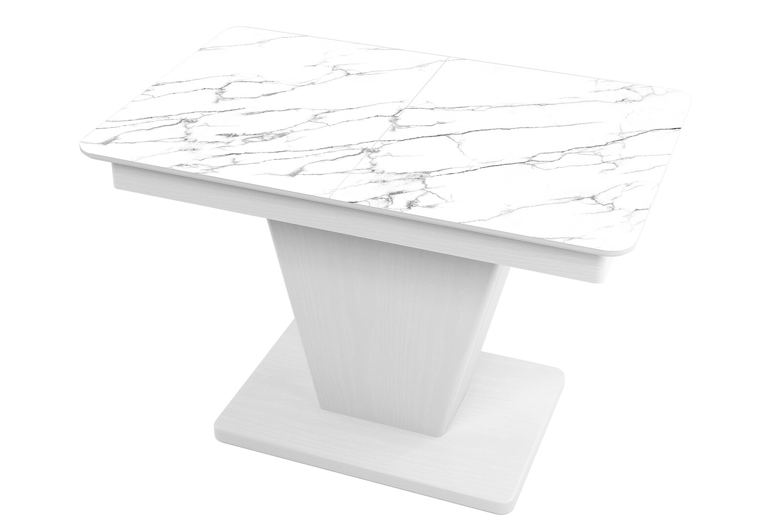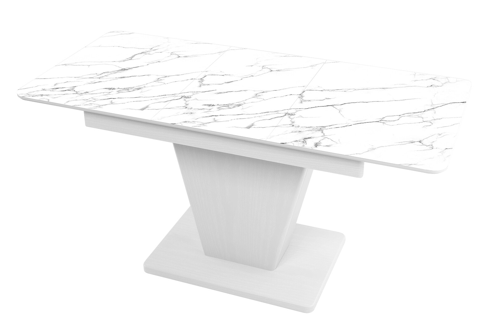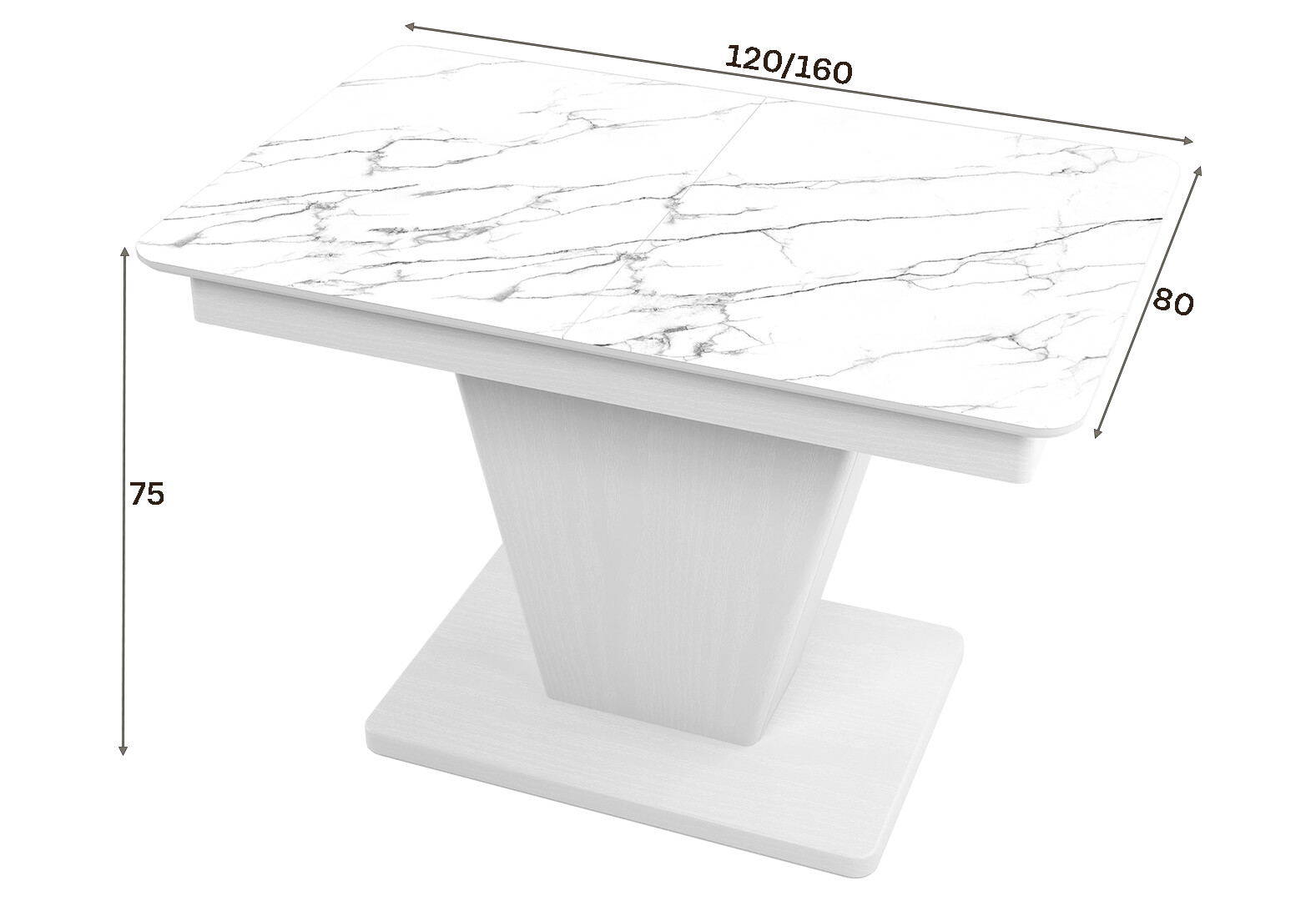 Стіл кухонний Jam Slide / Слайд розкладний 120 / 160 см, біле дерево / скло діамант 66 М