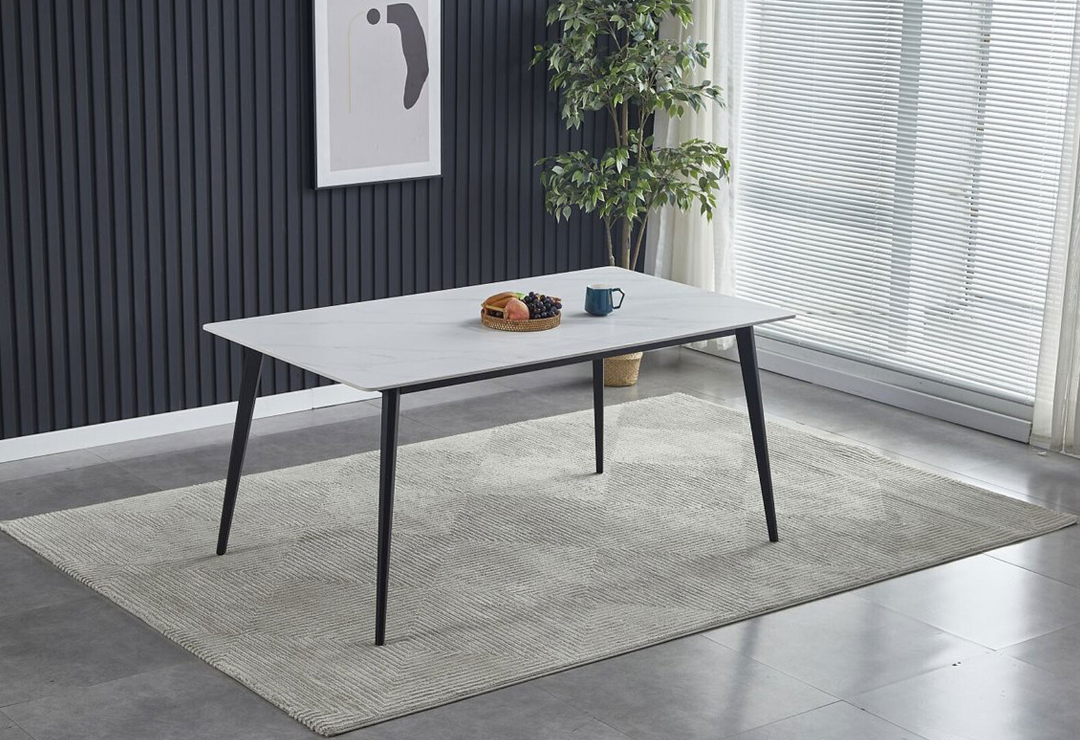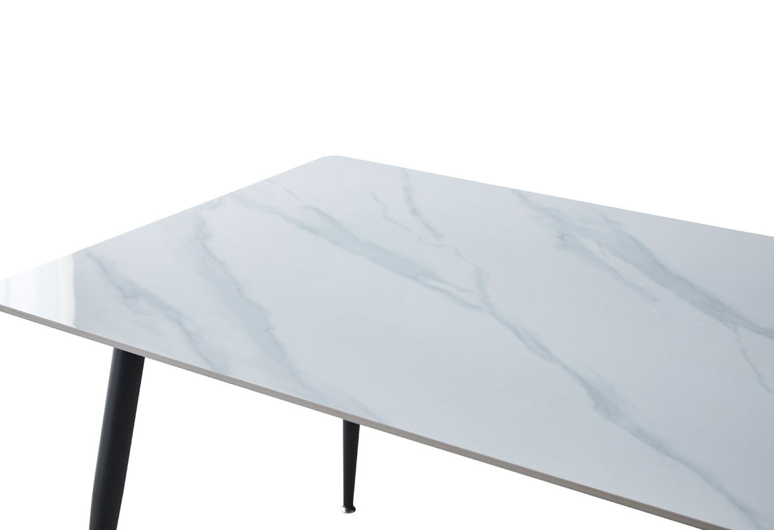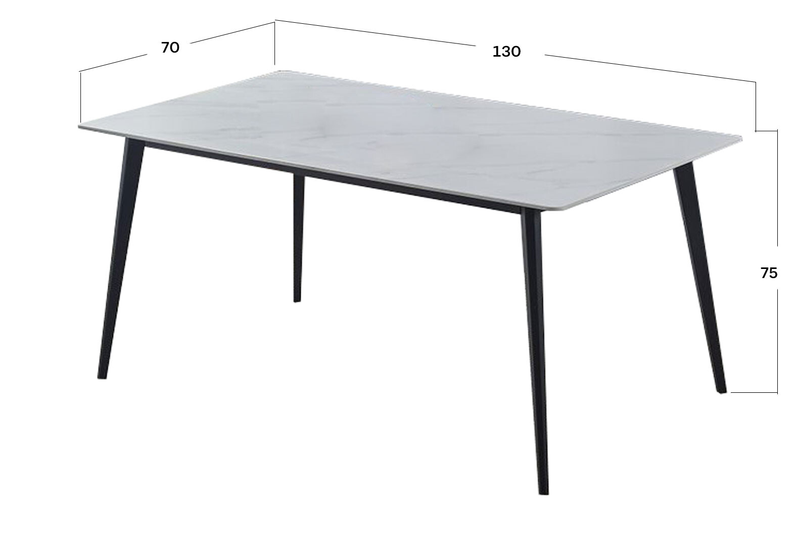 Стіл обідній Intarsio Саба керамік / Saba ceramic 130х70 см, Білий глянець / чорний каркас